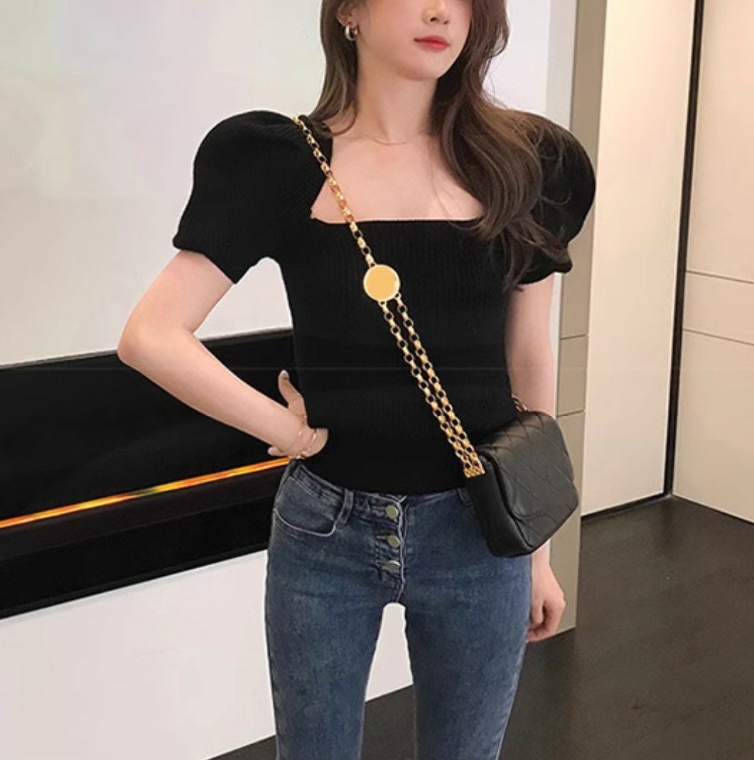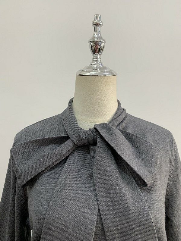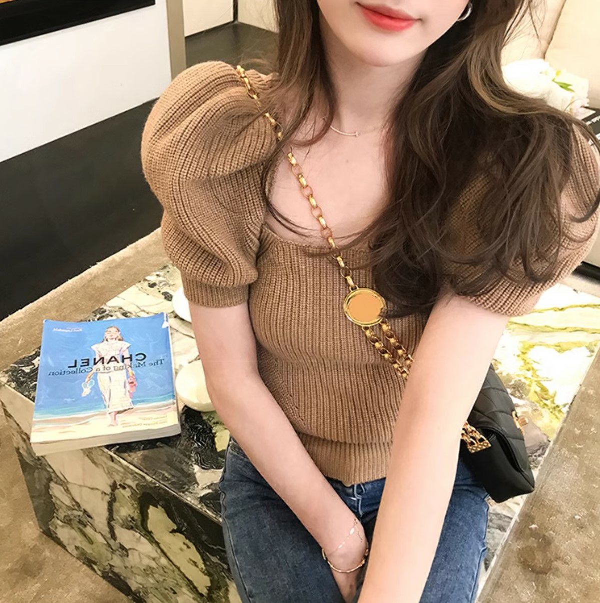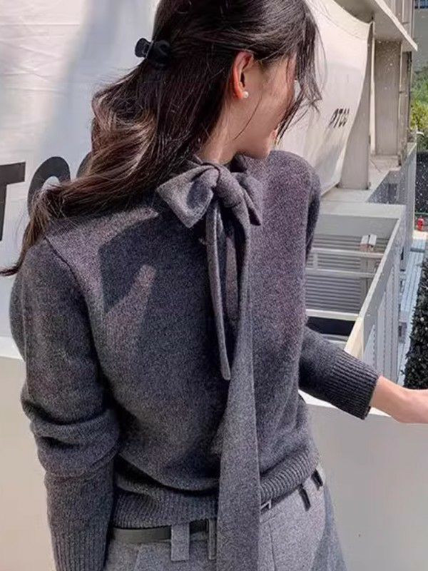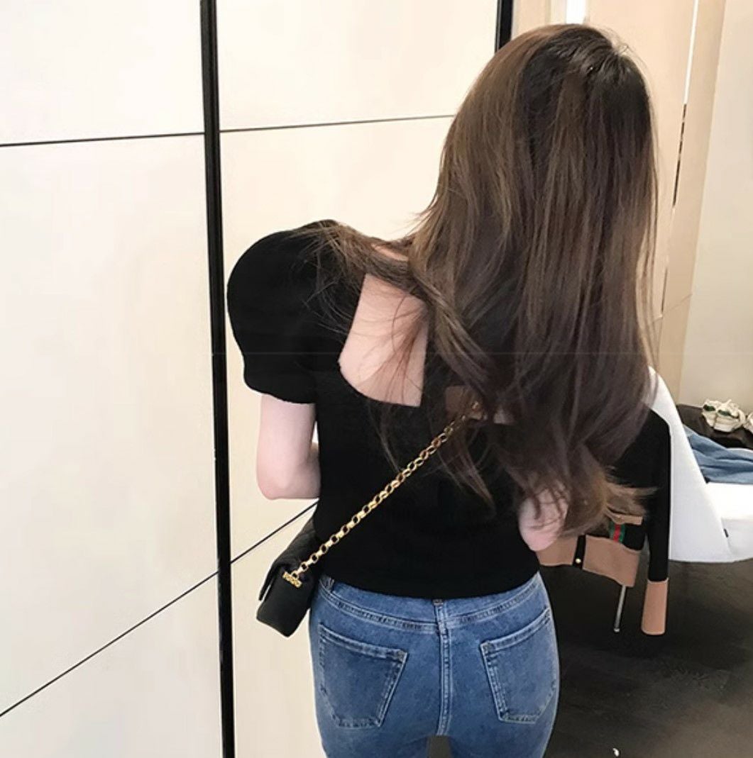 予約 2color パフスリーブ スクエアネック バックリボン ニット