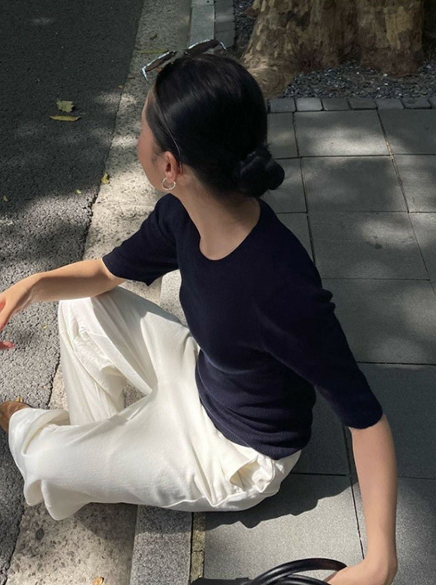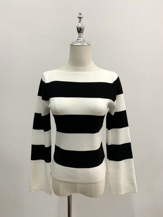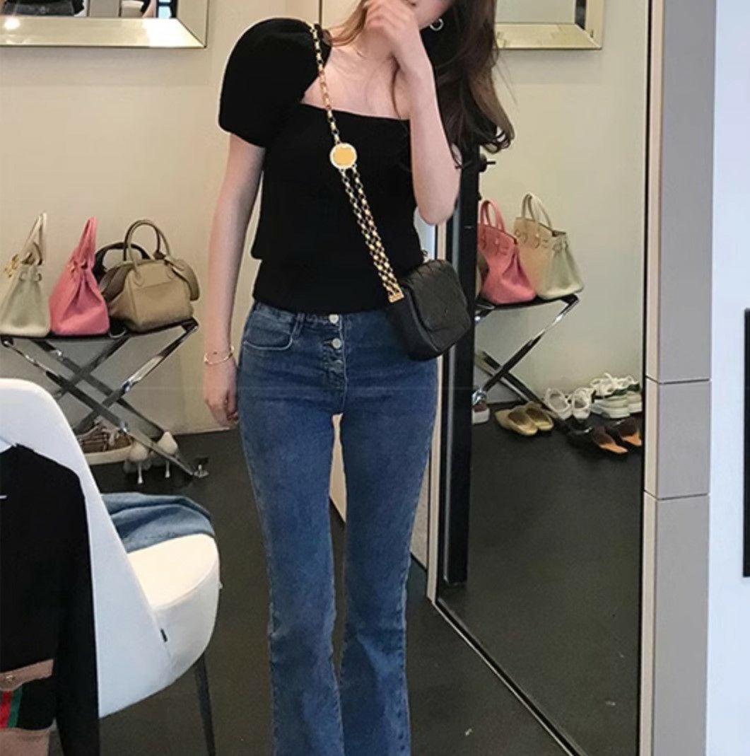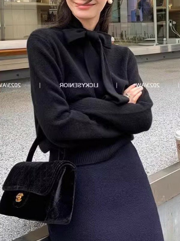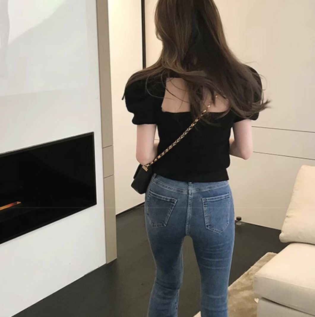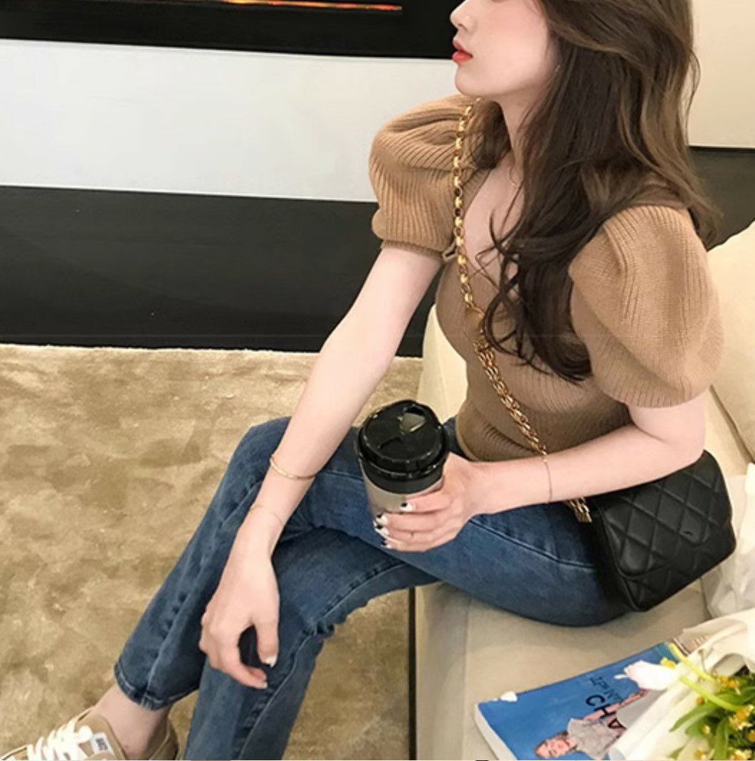予約 2color パフスリーブ スクエアネック バックリボン ニット