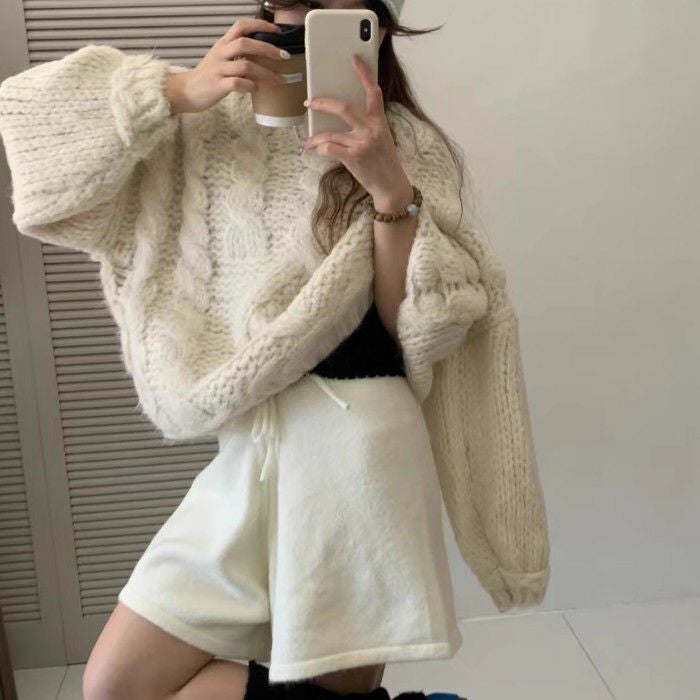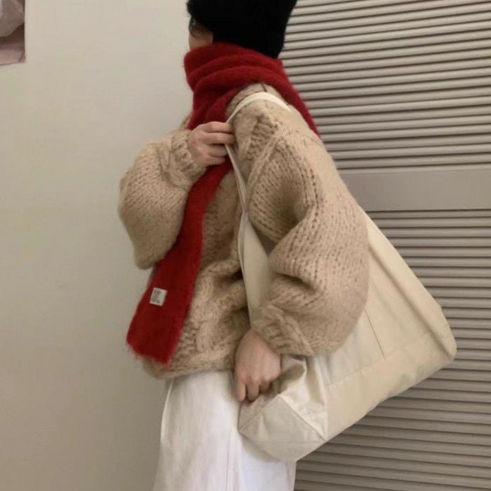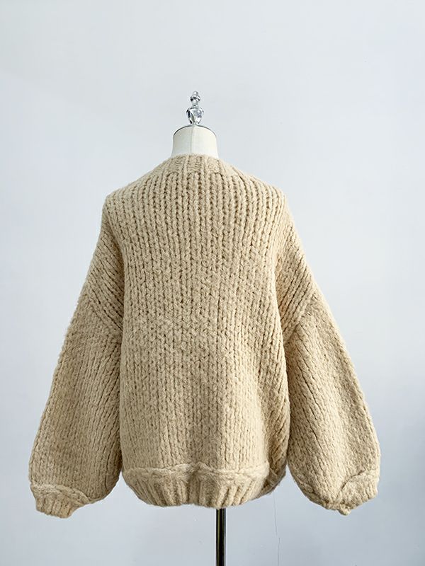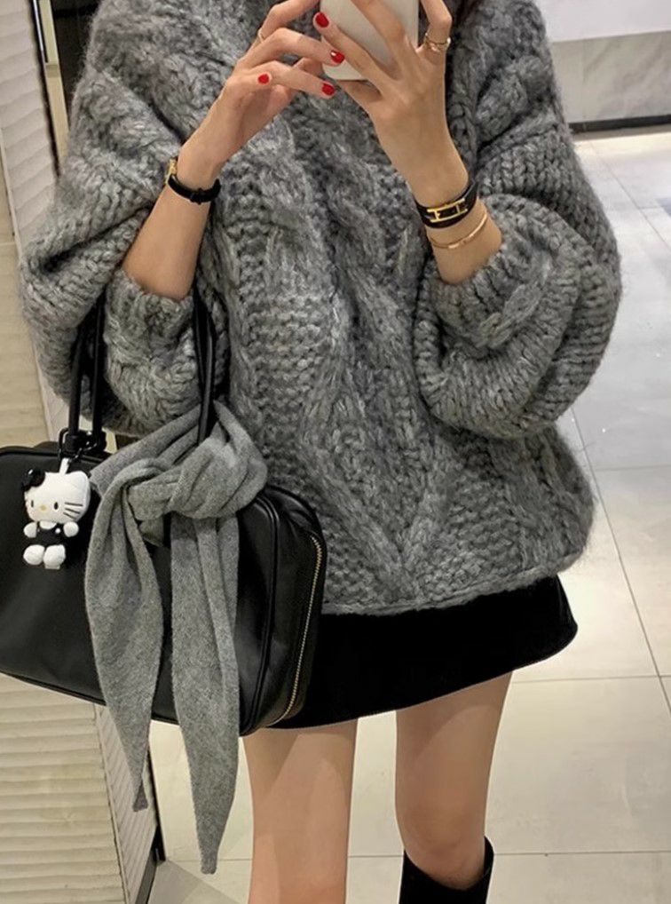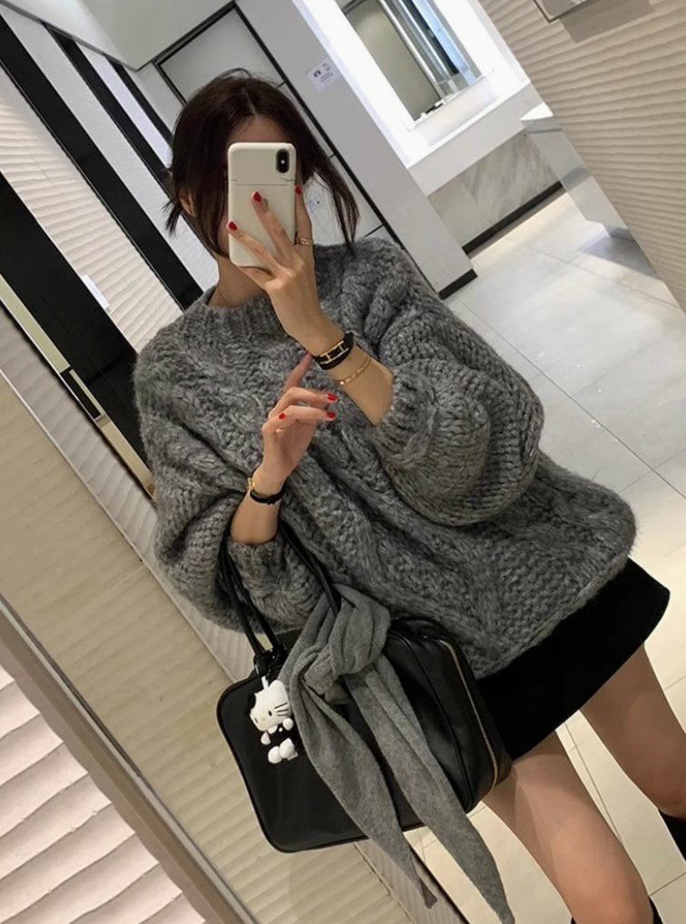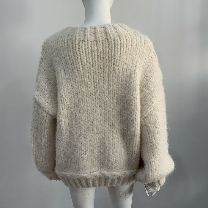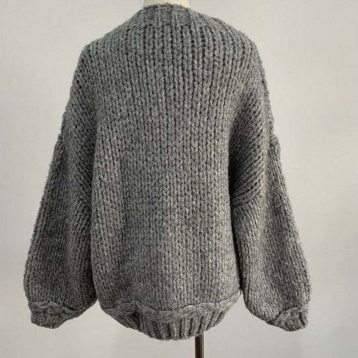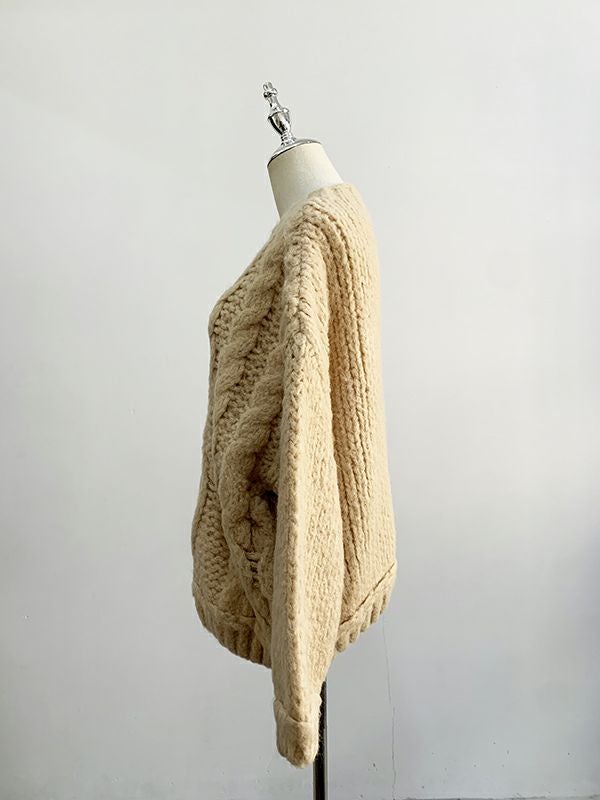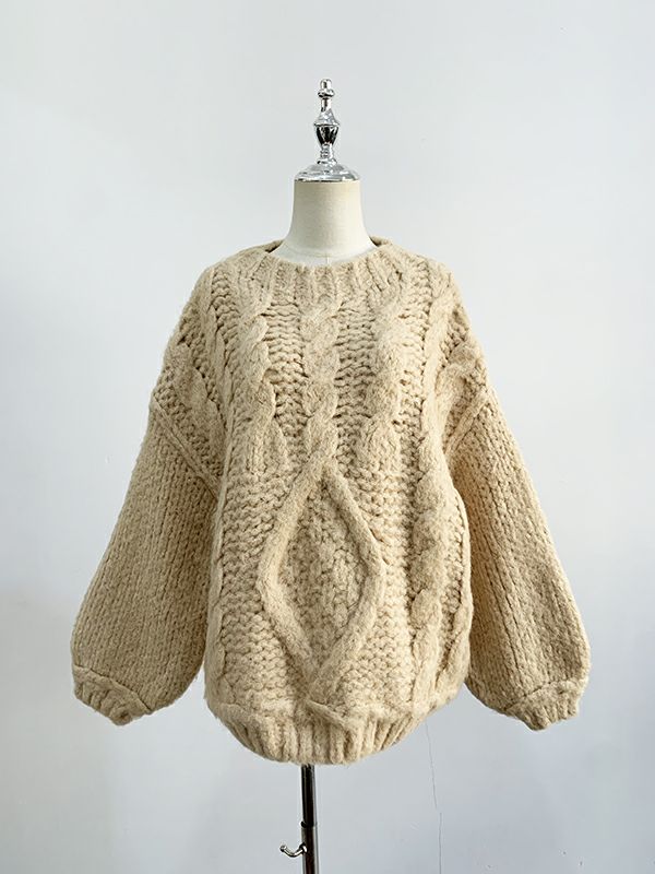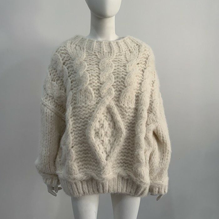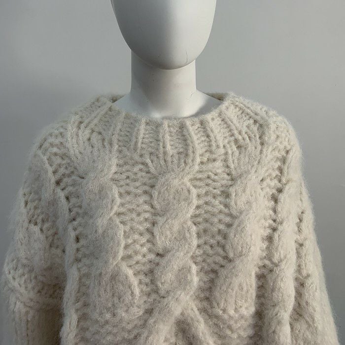 一部即納 3color WOOL オーバーサイズ ケーブル クルーネックニット