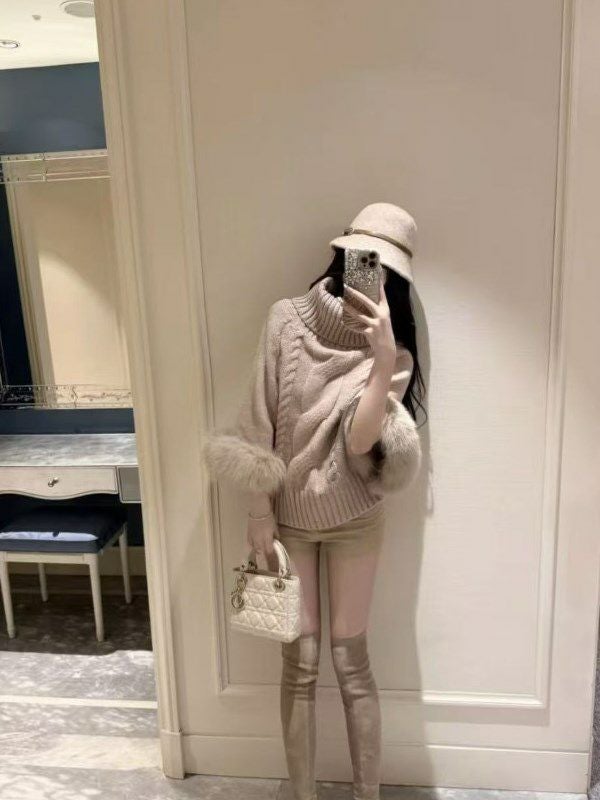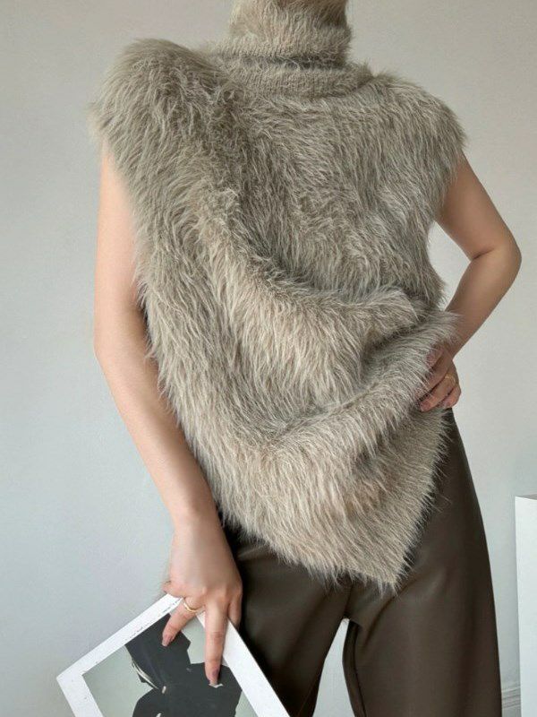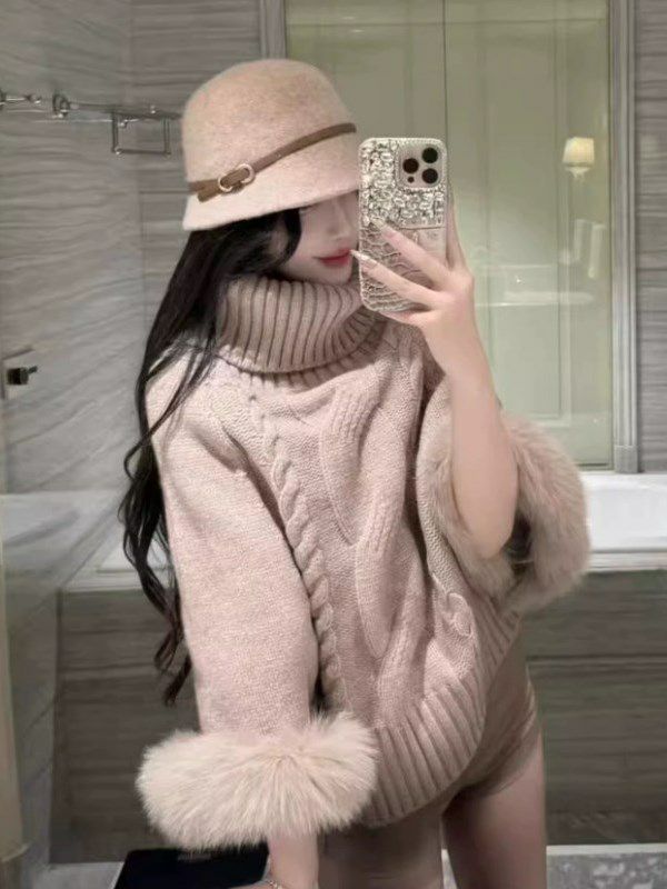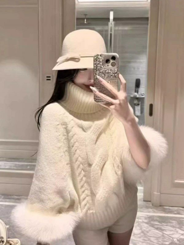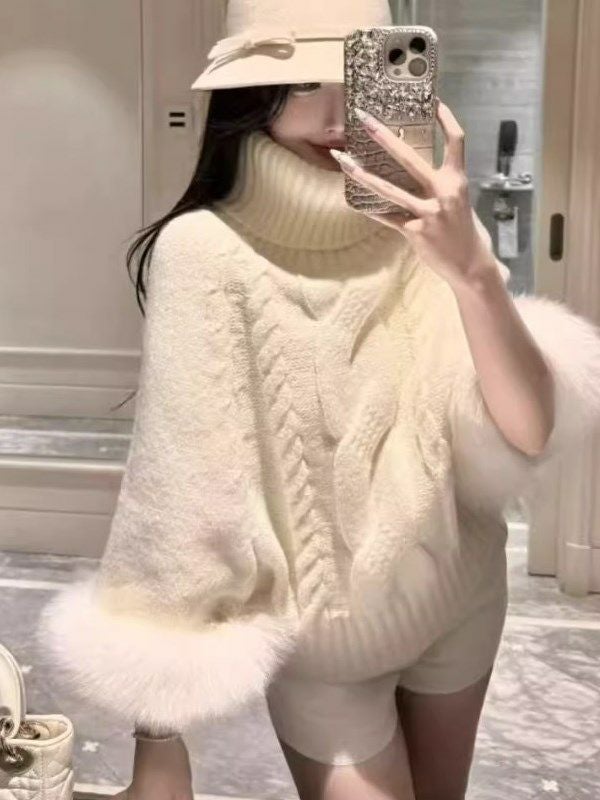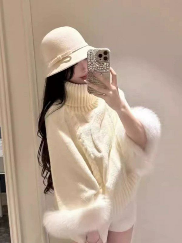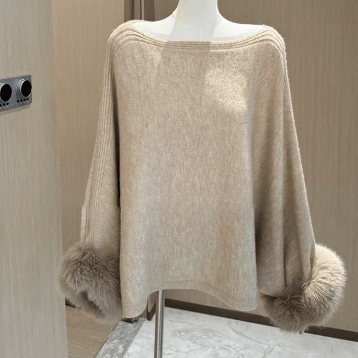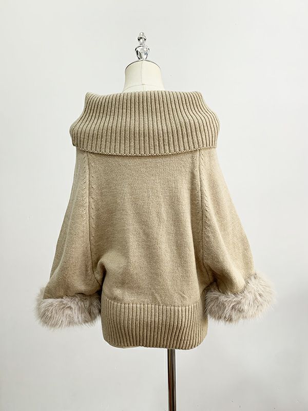 一部即納 2color Sleeve Fur ケープシルエット ニット