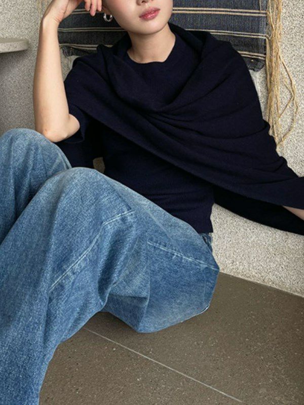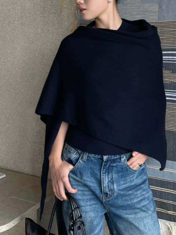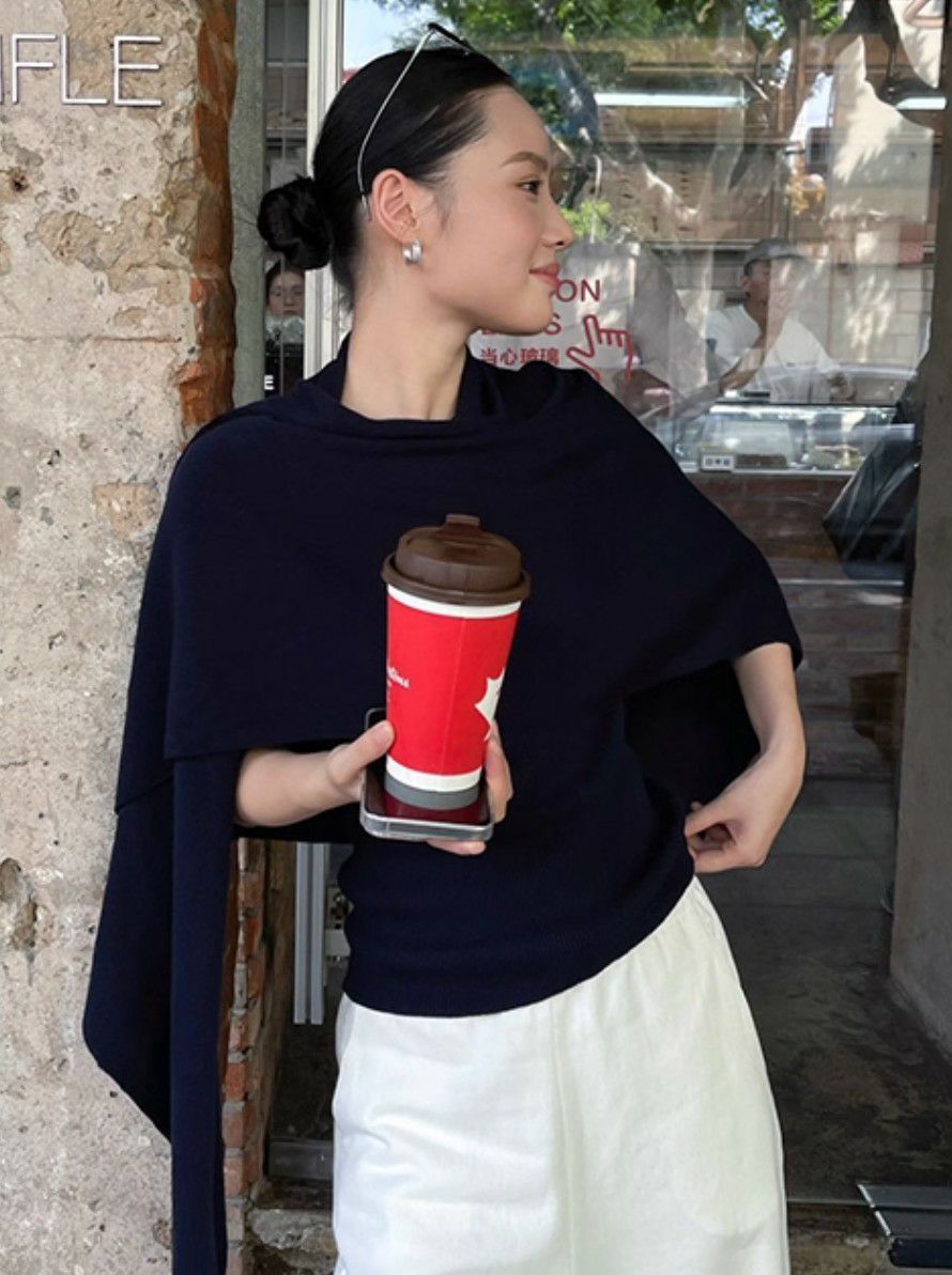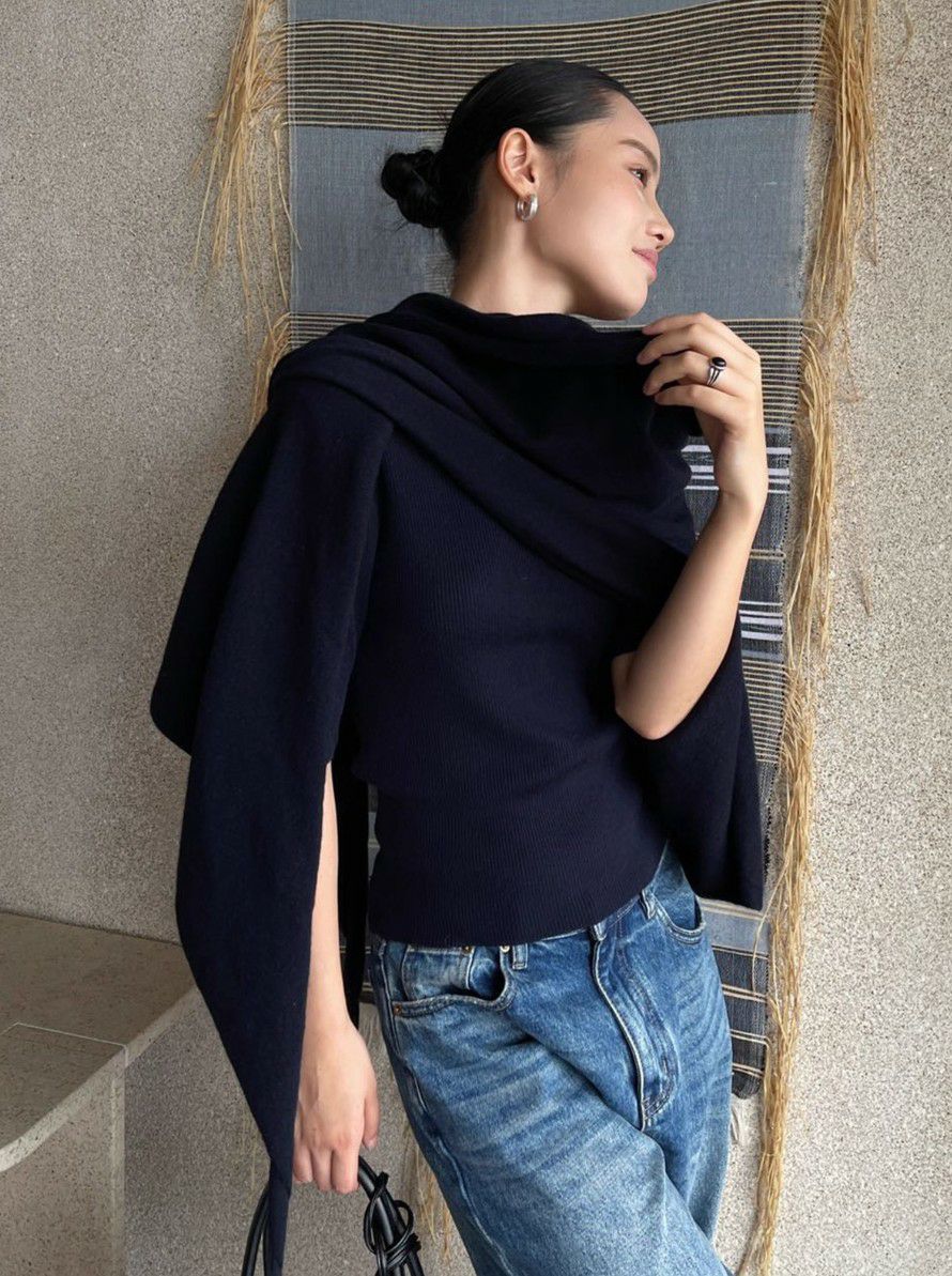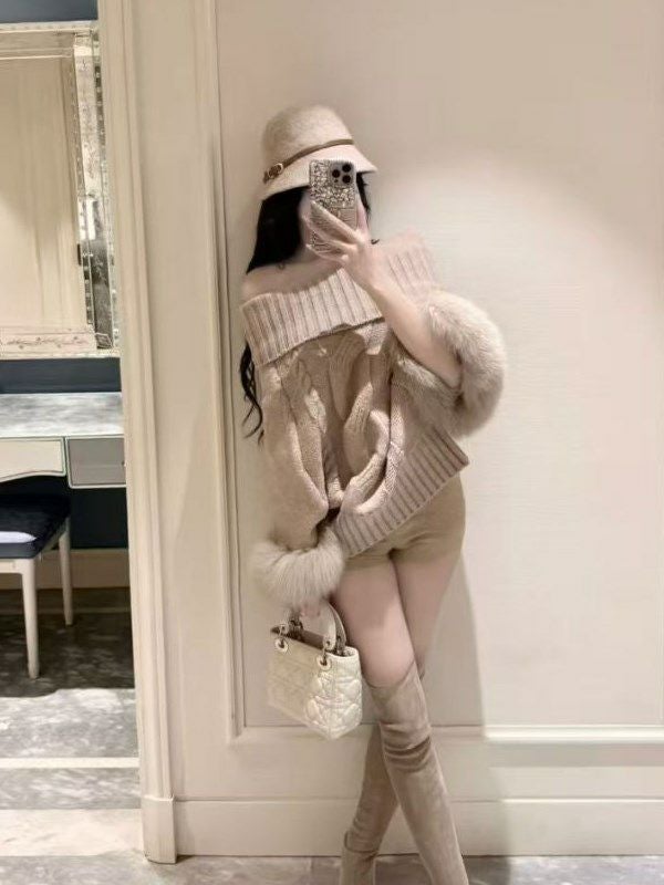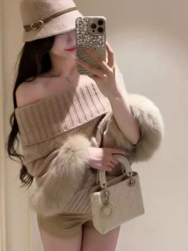 一部即納 2color Sleeve Fur ケープシルエット ニット