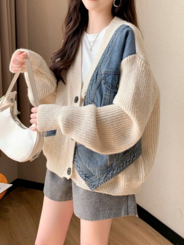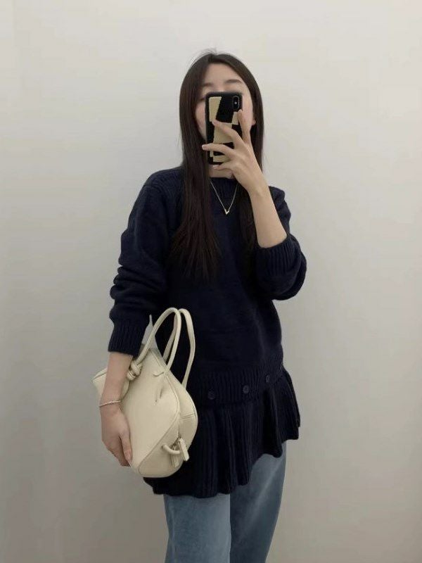 予約 2color シャツ ドッキング ケーブル ニット プルオーバー