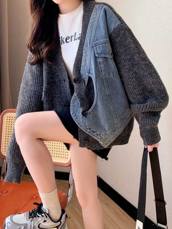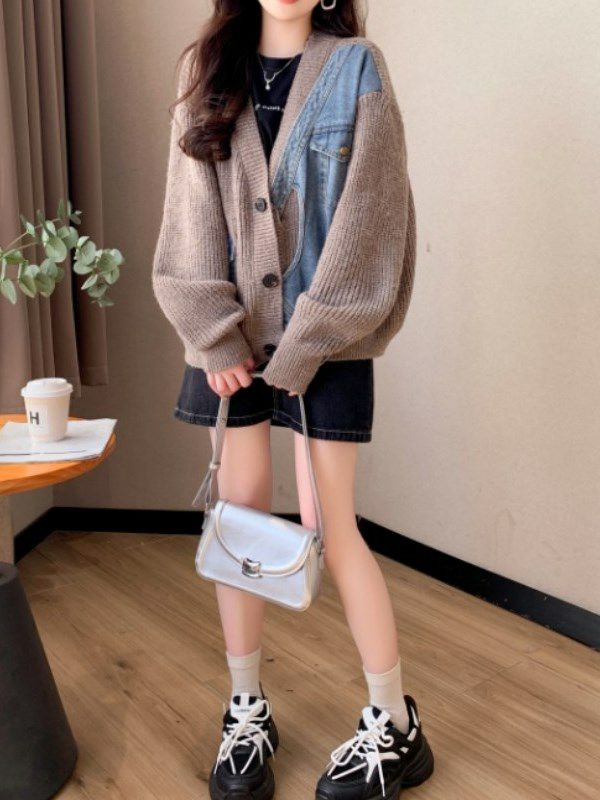 即納 オリジナル ハート silver ボタン ニット カーディガン