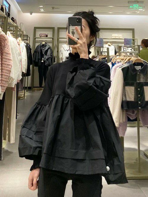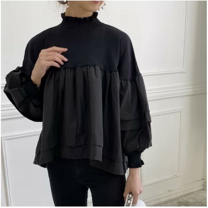 3. 即納 異素材 切り替え フリルカラー プルオーバー トップス