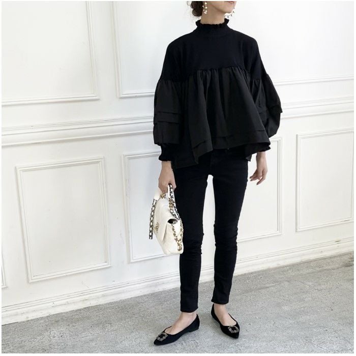 4. 即納 異素材 切り替え フリルカラー プルオーバー トップス