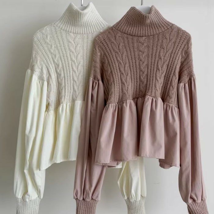 予約 2color シャツ ドッキング ケーブル ニット プルオーバー