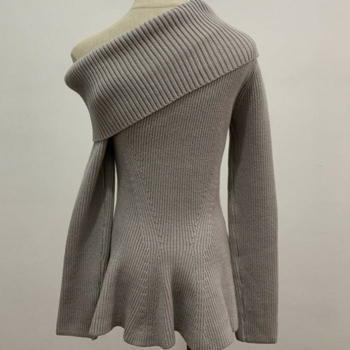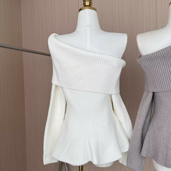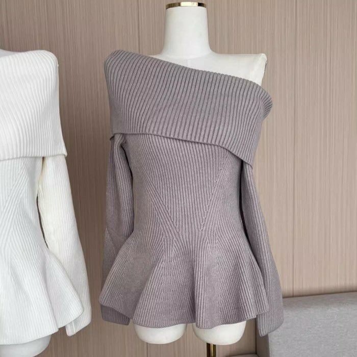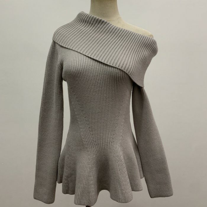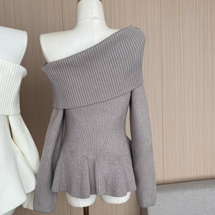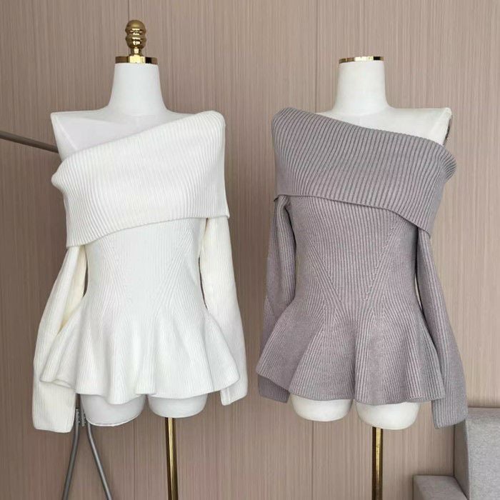 ペプラムデザインが可愛いトレンドのオフショルだーニット