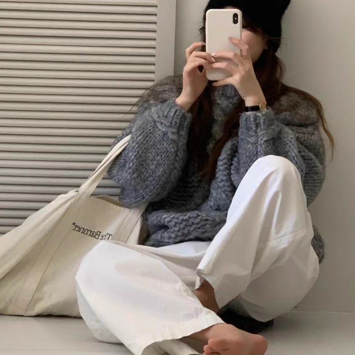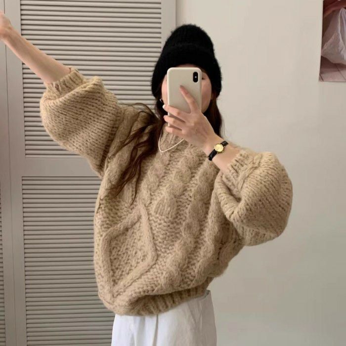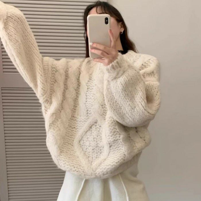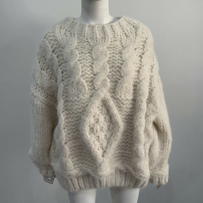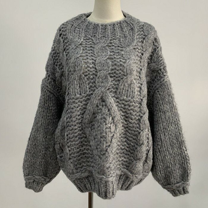 一部即納 3color WOOL オーバーサイズ ケーブル クルーネックニット