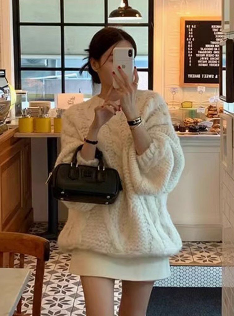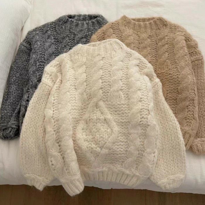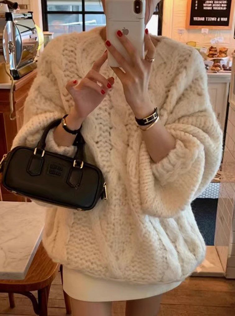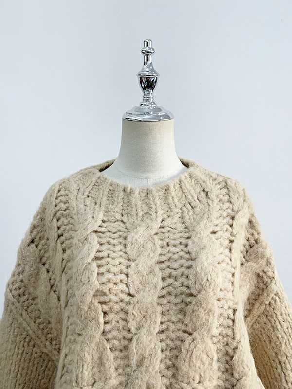 4. 一部即納 3color WOOL オーバーサイズ ケーブル クルーネックニット