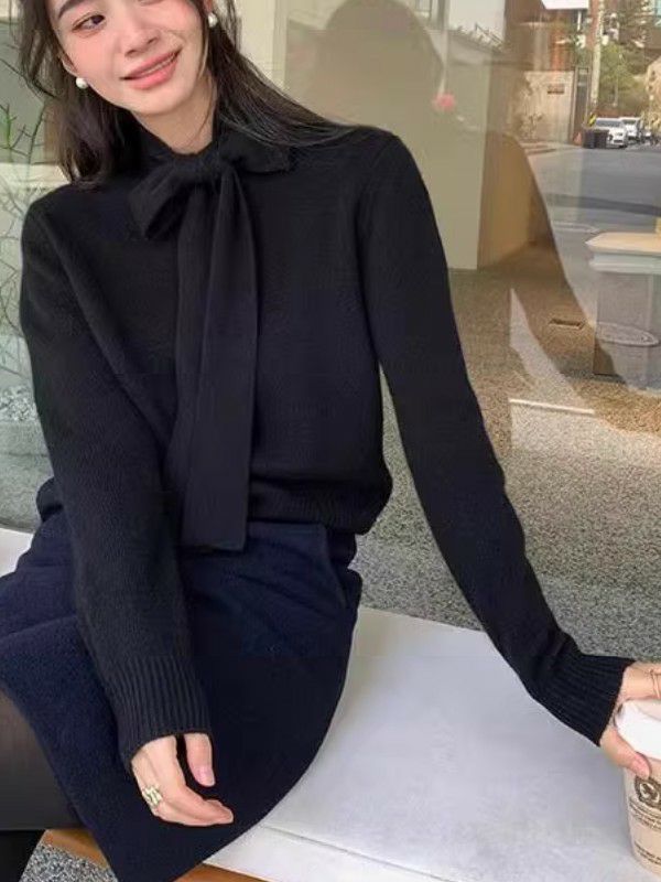 予約 2color リボンタイ シンプル ニット