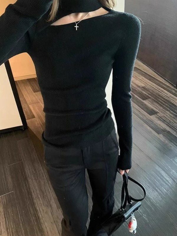 一枚でモードな印象を叶える、洗練されたデザインニット。