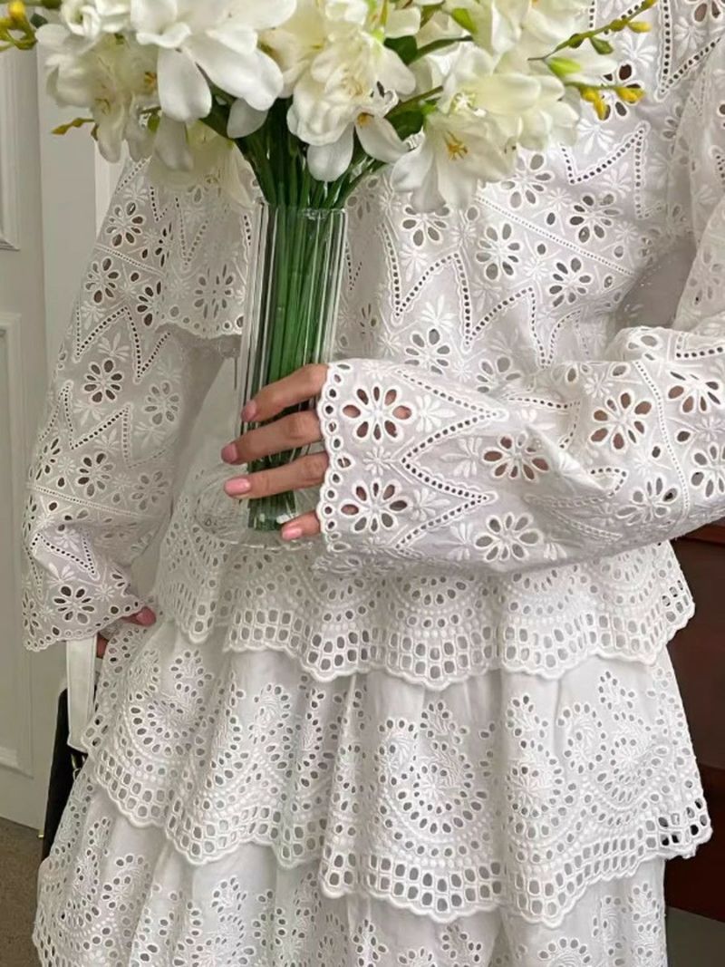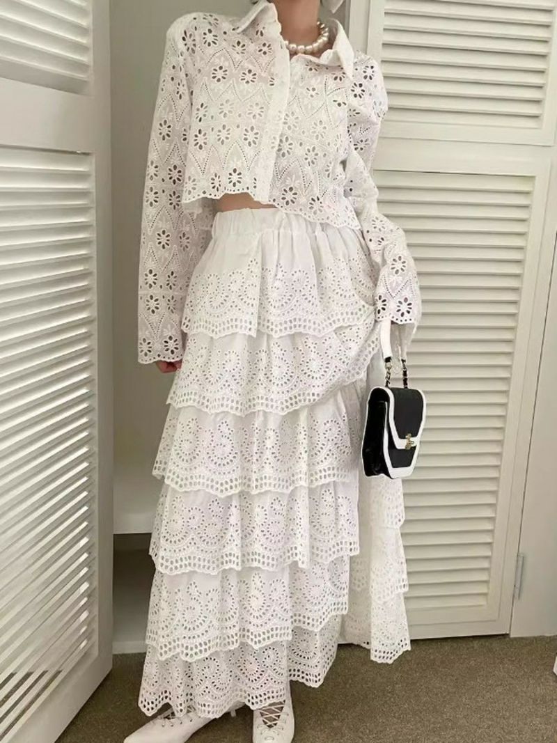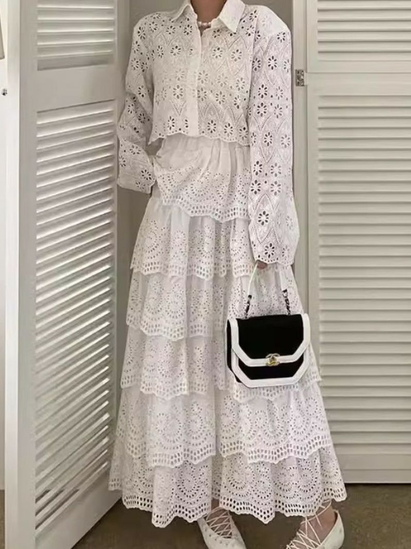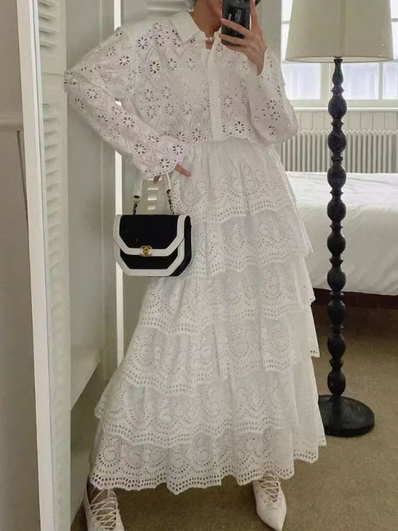 予約 2set カットワーク シャツ ➕ ティアード スカート