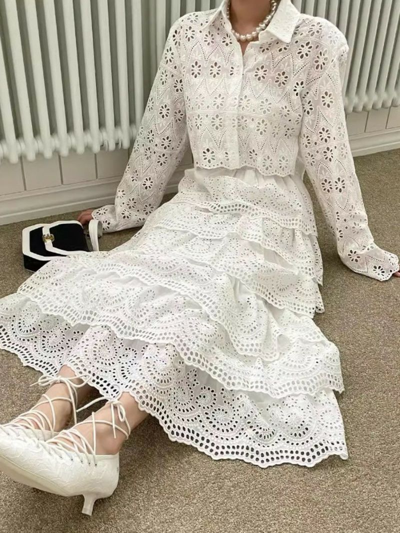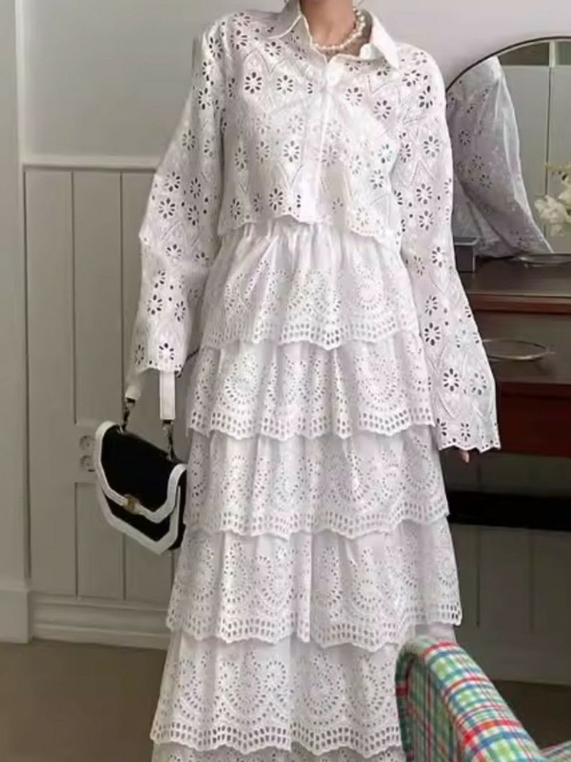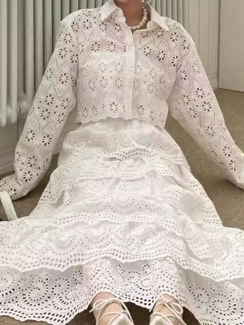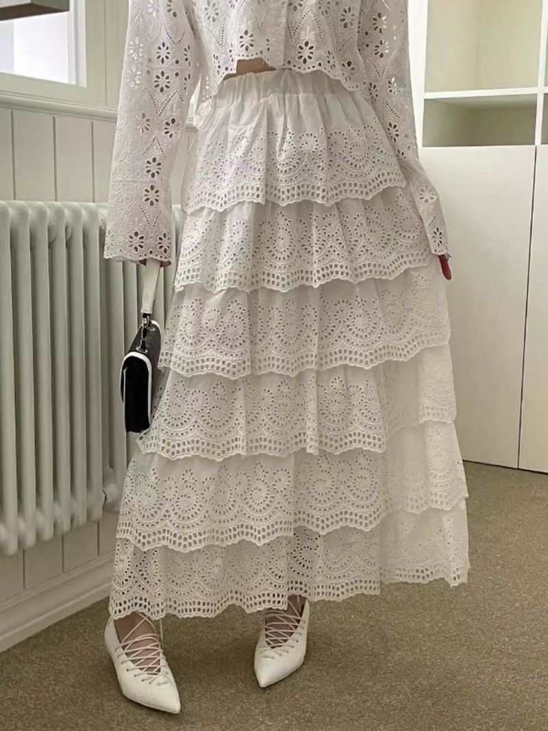 予約 2set カットワーク シャツ ➕ ティアード スカート