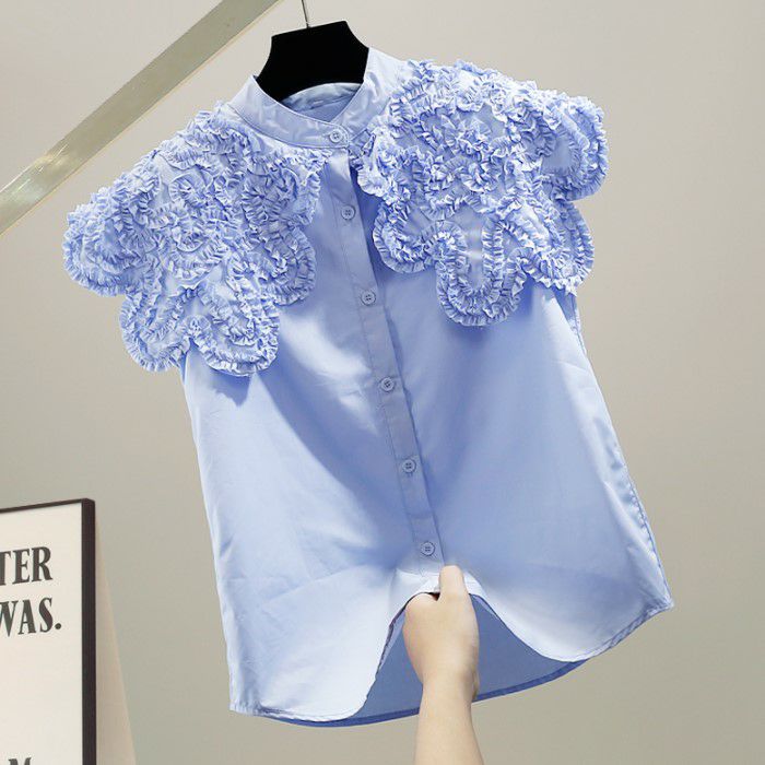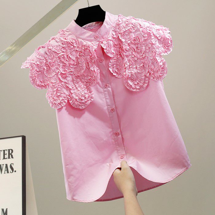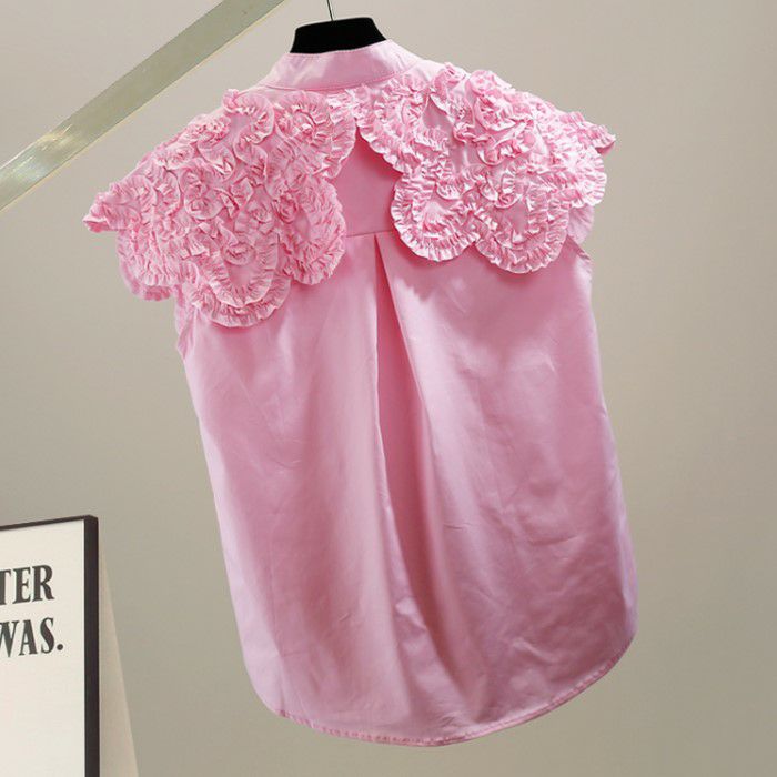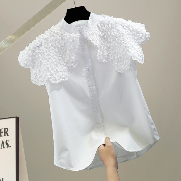 デコラティブな襟が旬なデザインのノースリーブシャツ