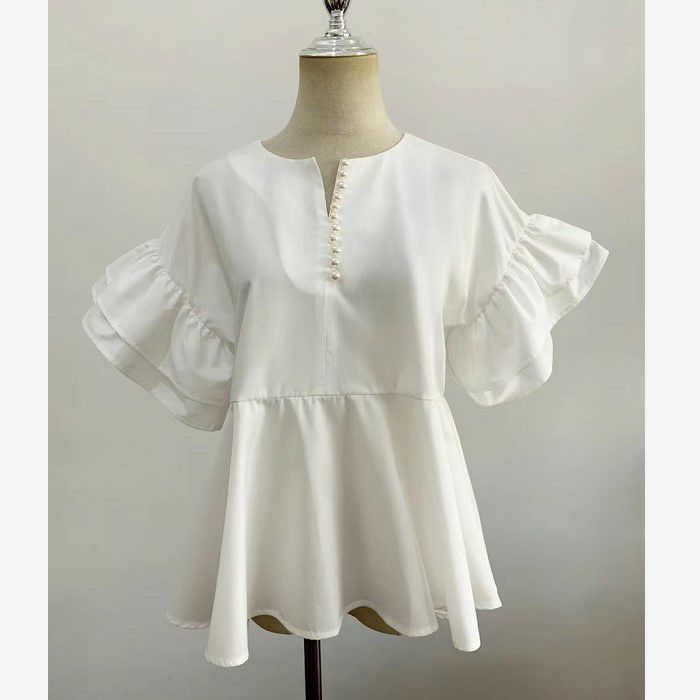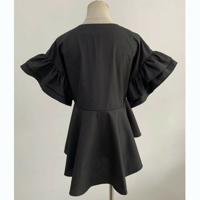 ※大人気の袖フリルAラインワンピースblack と同生地を使用しています。