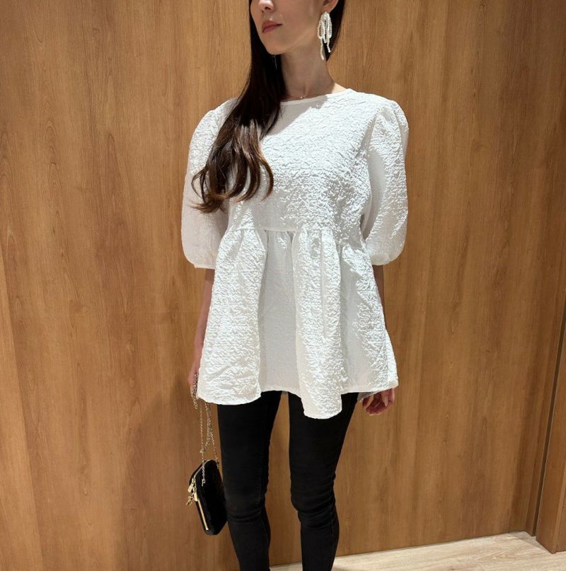 ふんわりシルエットのトレンドのふくれジャガードトップス