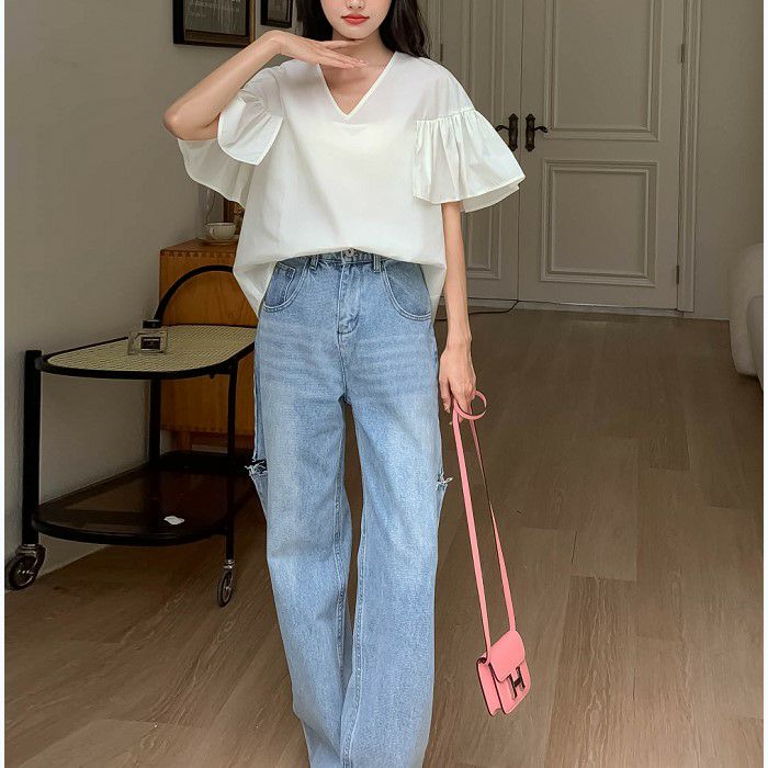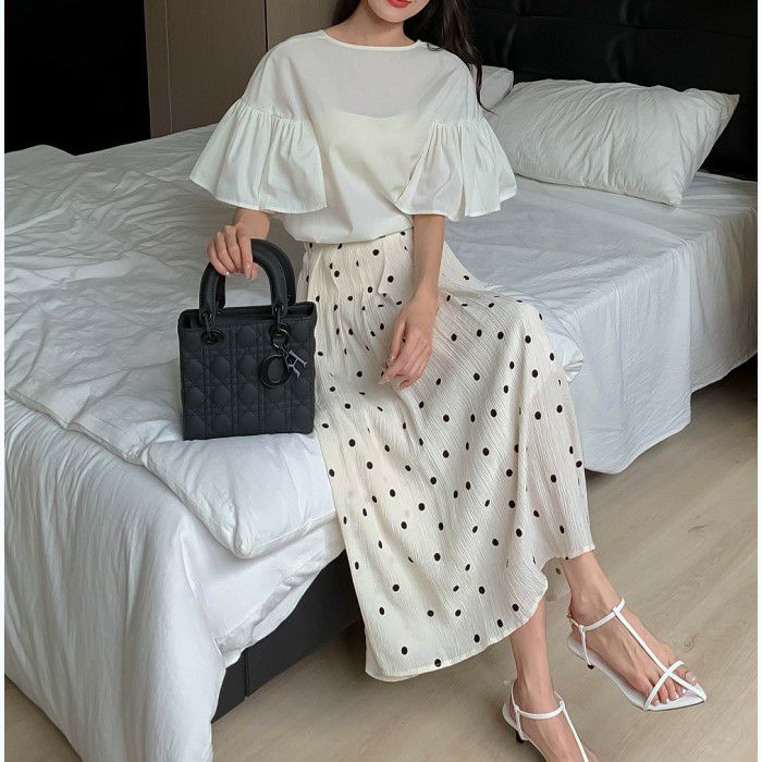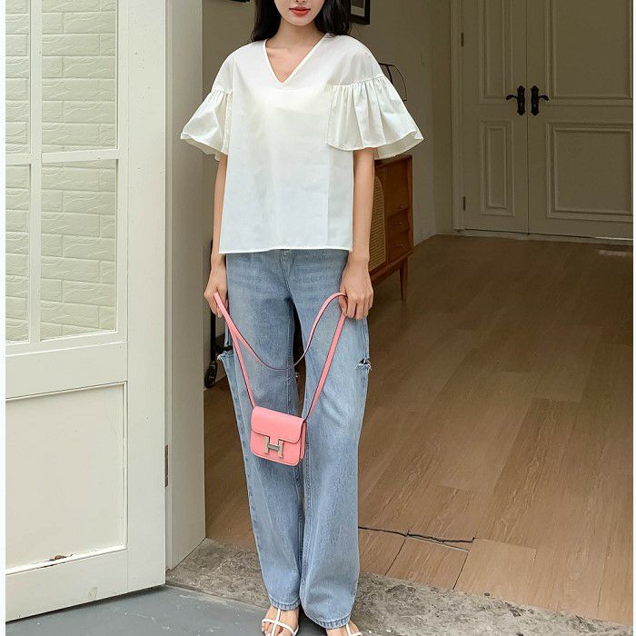 FRILLスリーブは程よいボリュームがあり歩く度に揺れて目を惹く一着