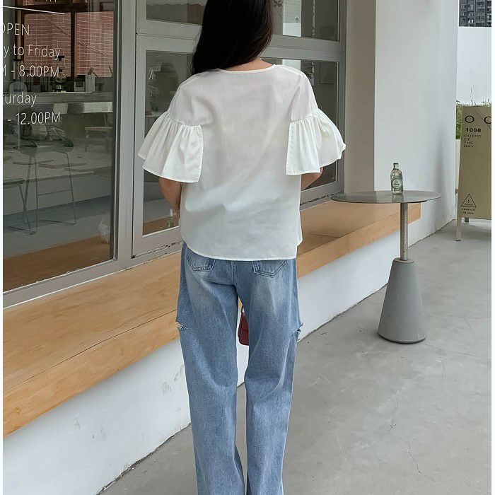袖のFRILLがポイントのシャツプルオーバー