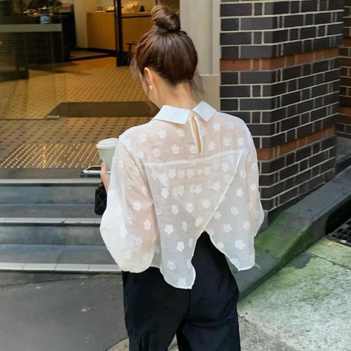 シアー感とバックスタイルのデザインが可愛いシャツ