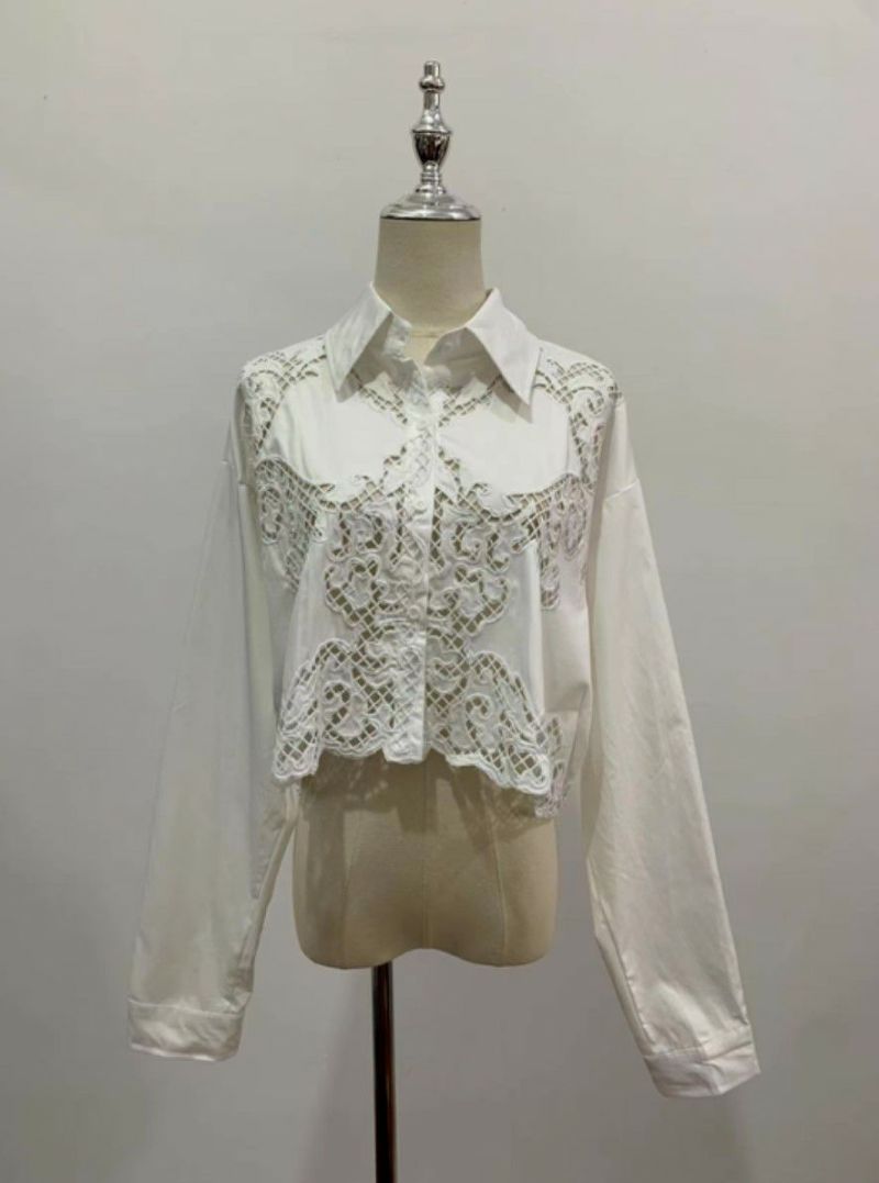トレンドのミニマルな丈もコーデを一新してくれるレースシャツ