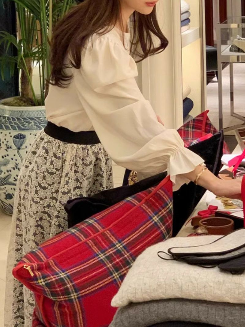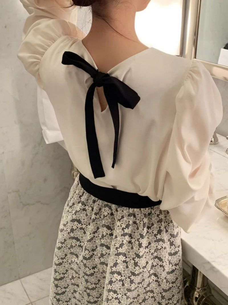 予約 2color バックリボン ベルスリーブ シフォン シャツ