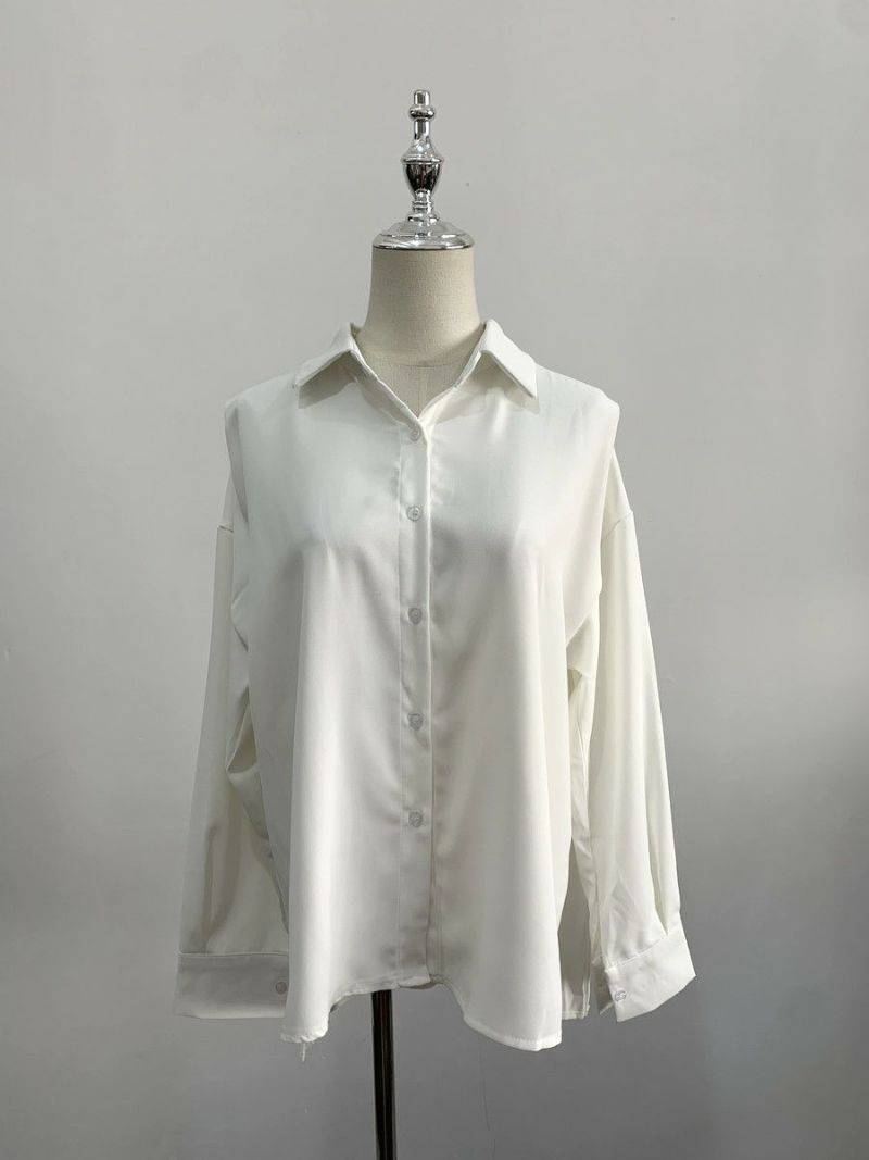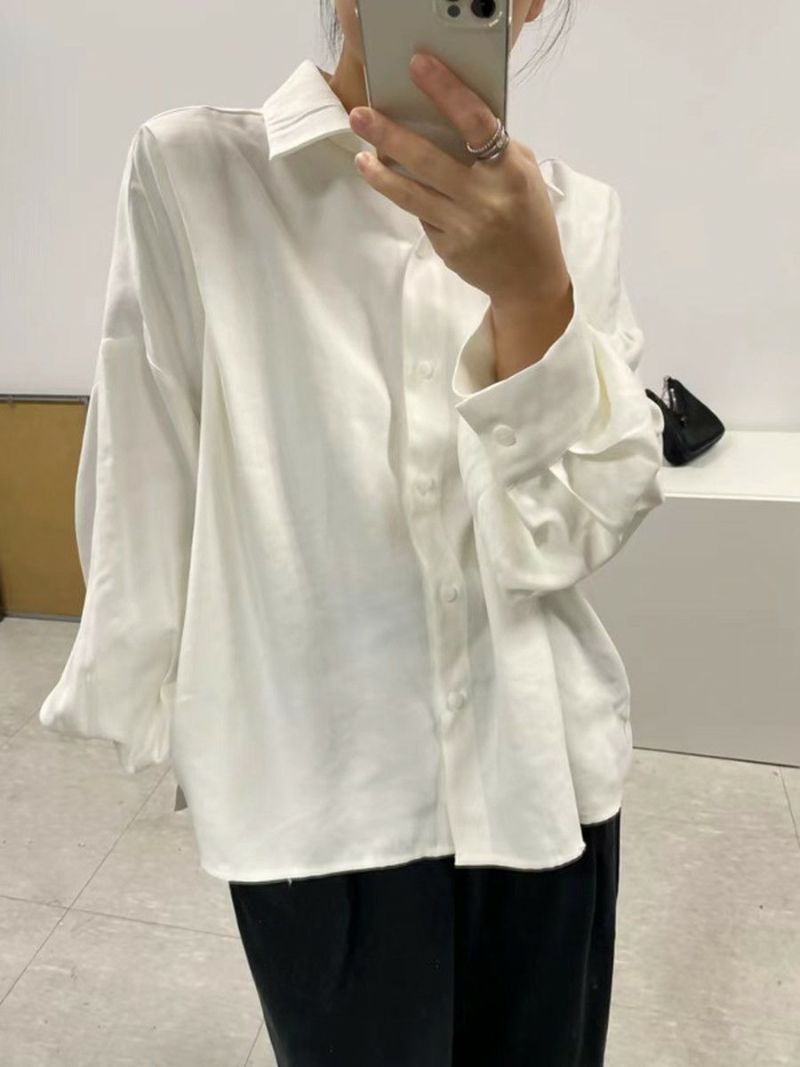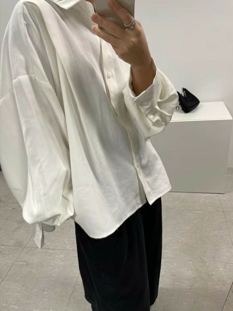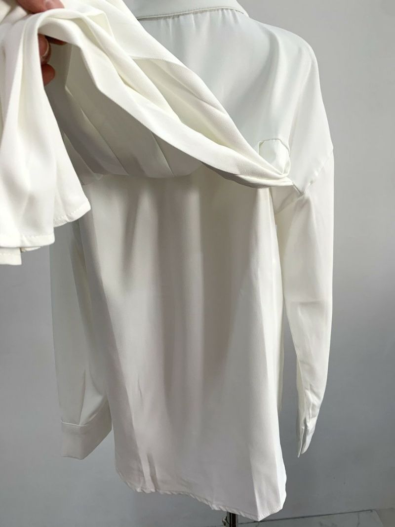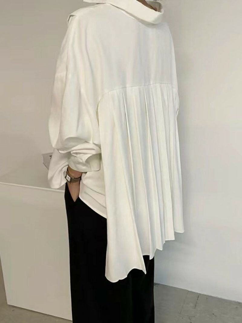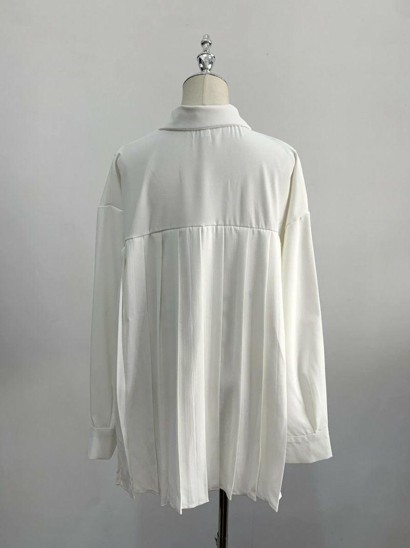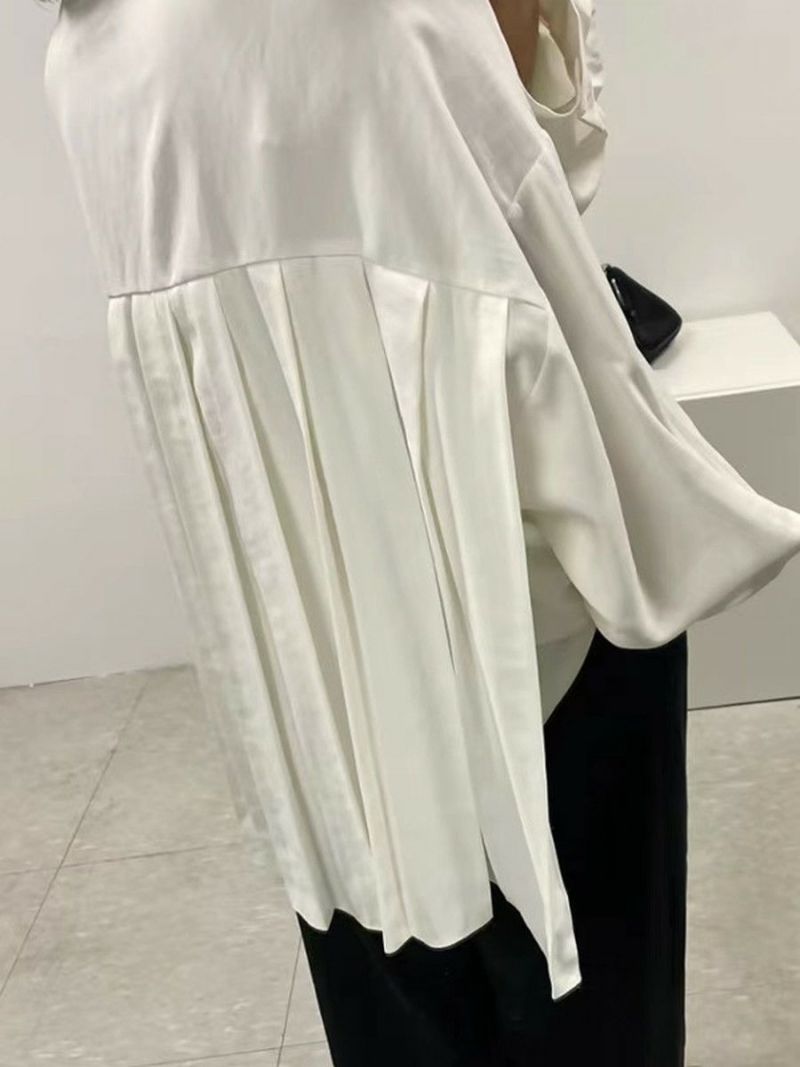 バックスタイルがプリーツになったキレイめシフォンシャツ