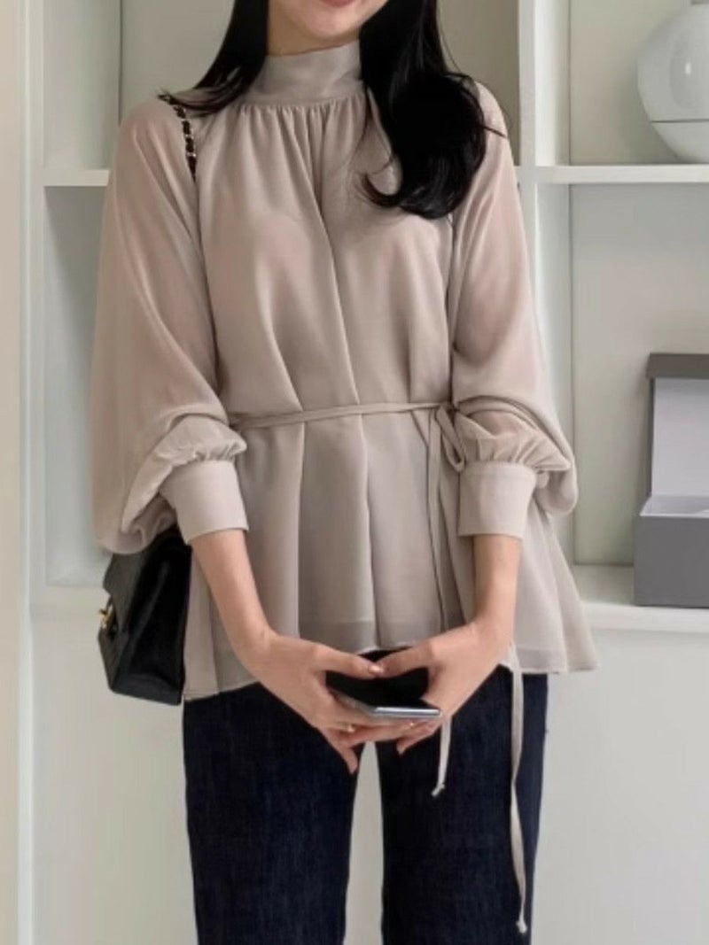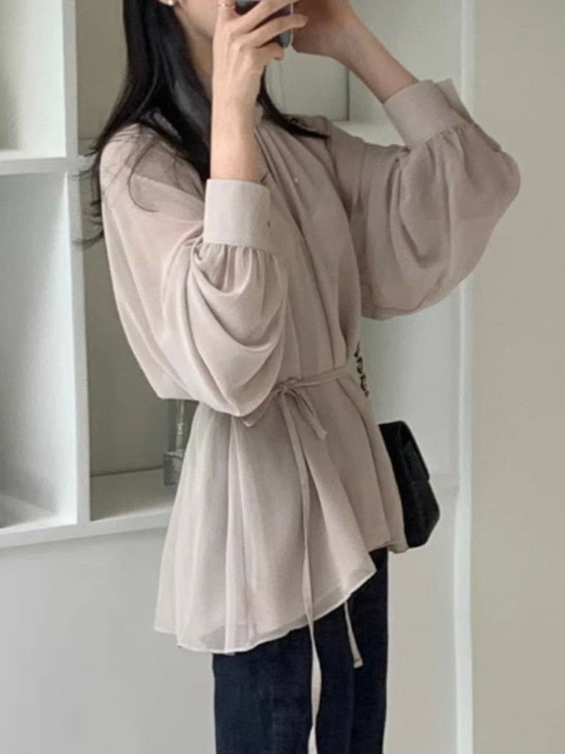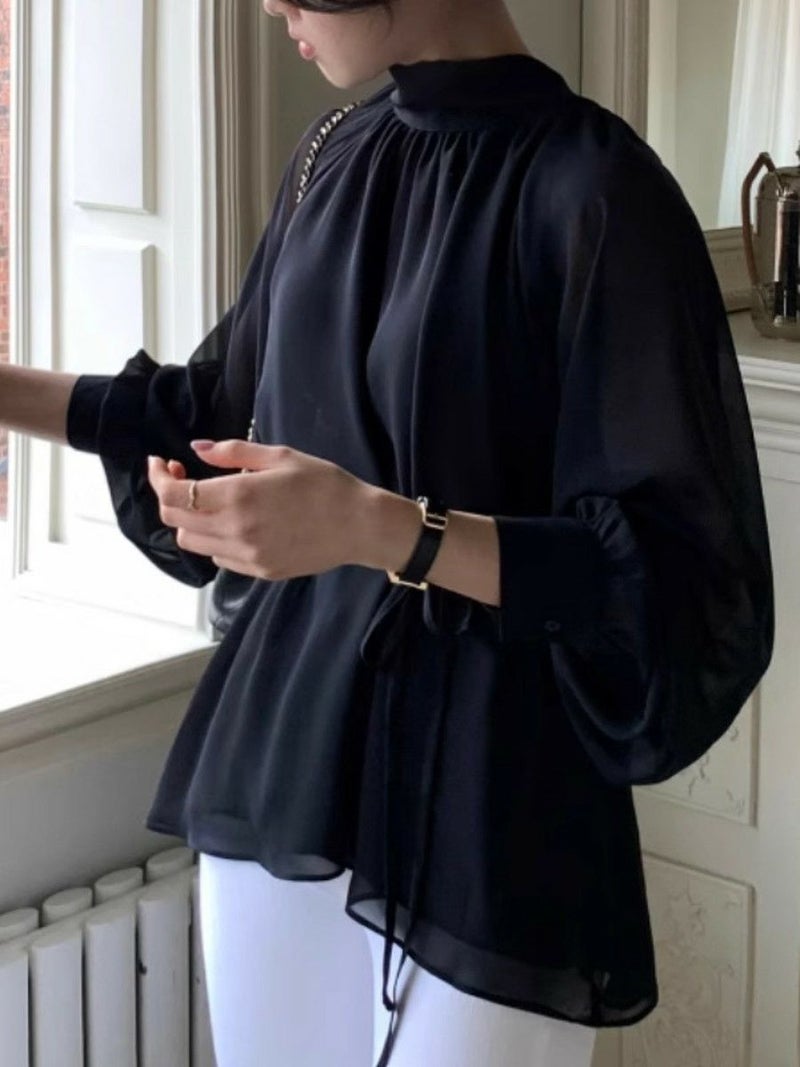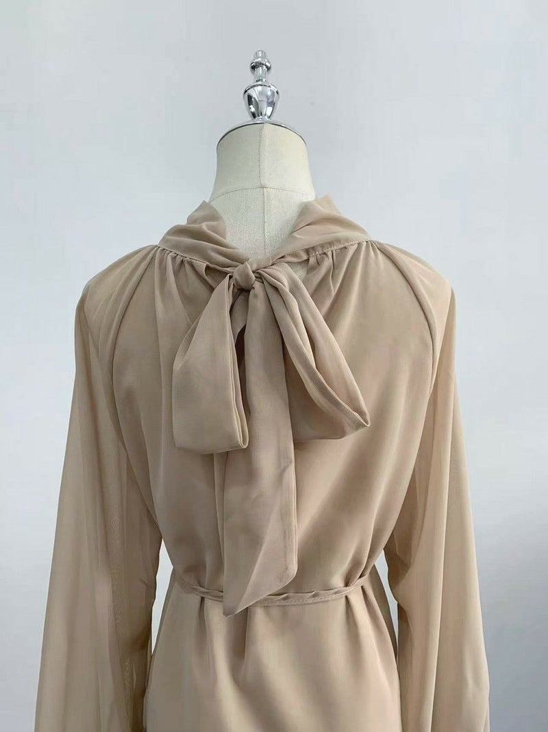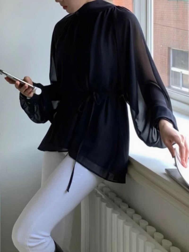 4. 予約 2color シアー シフォン ボウタイ トップス