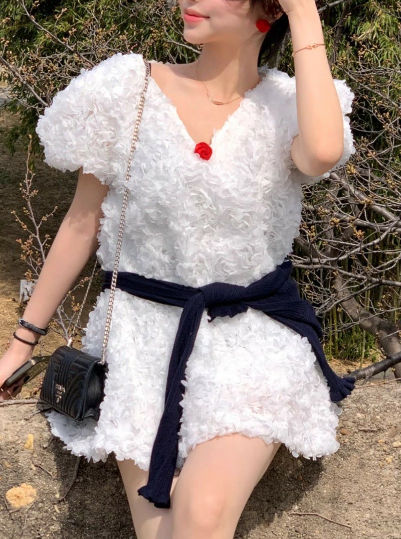 一部即納 2color Flower detail チュニック