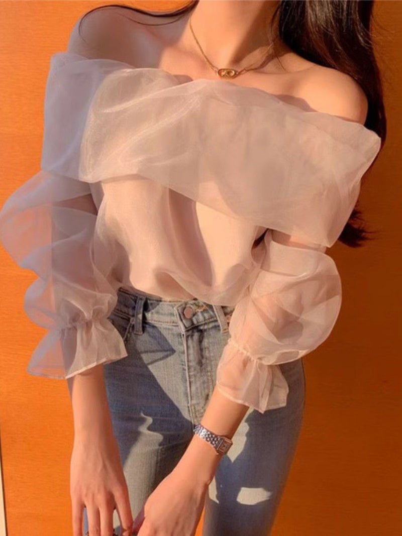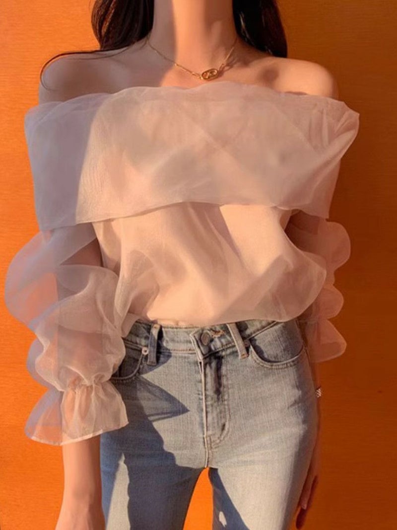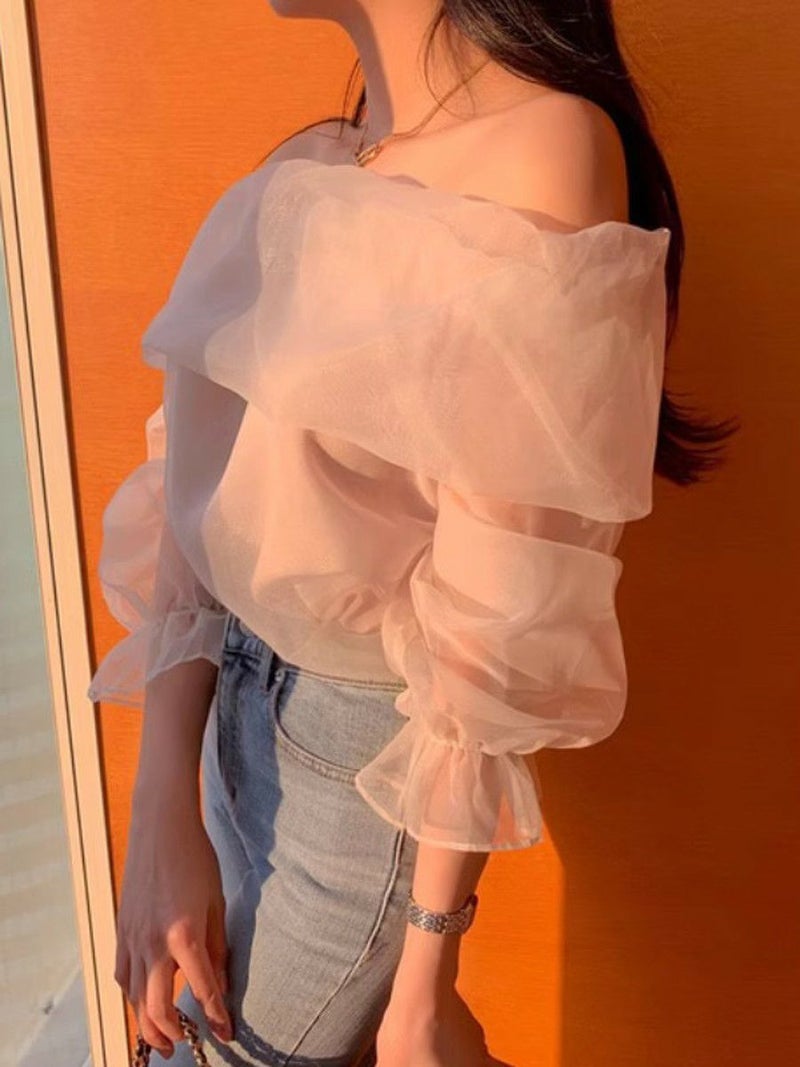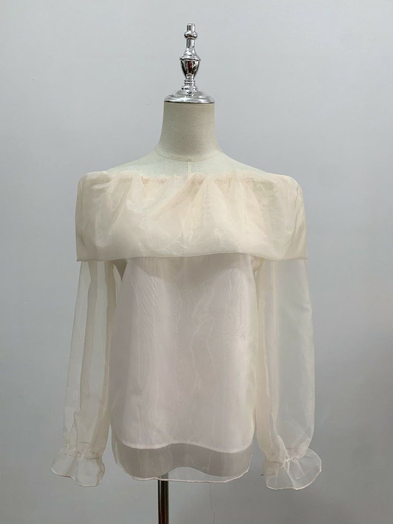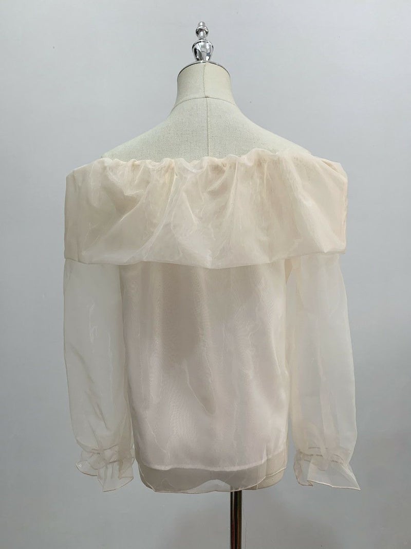 トレンドのオーガンジー素材が可愛いオフショルダートップス