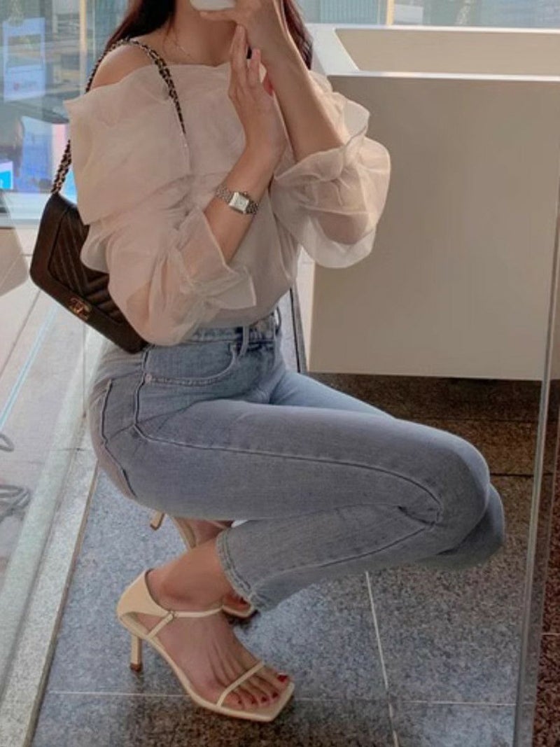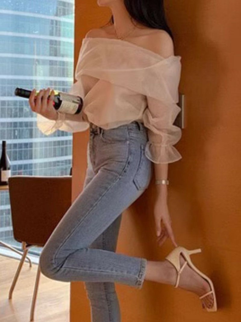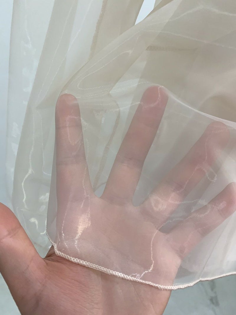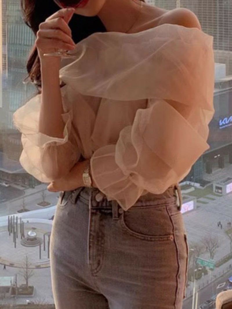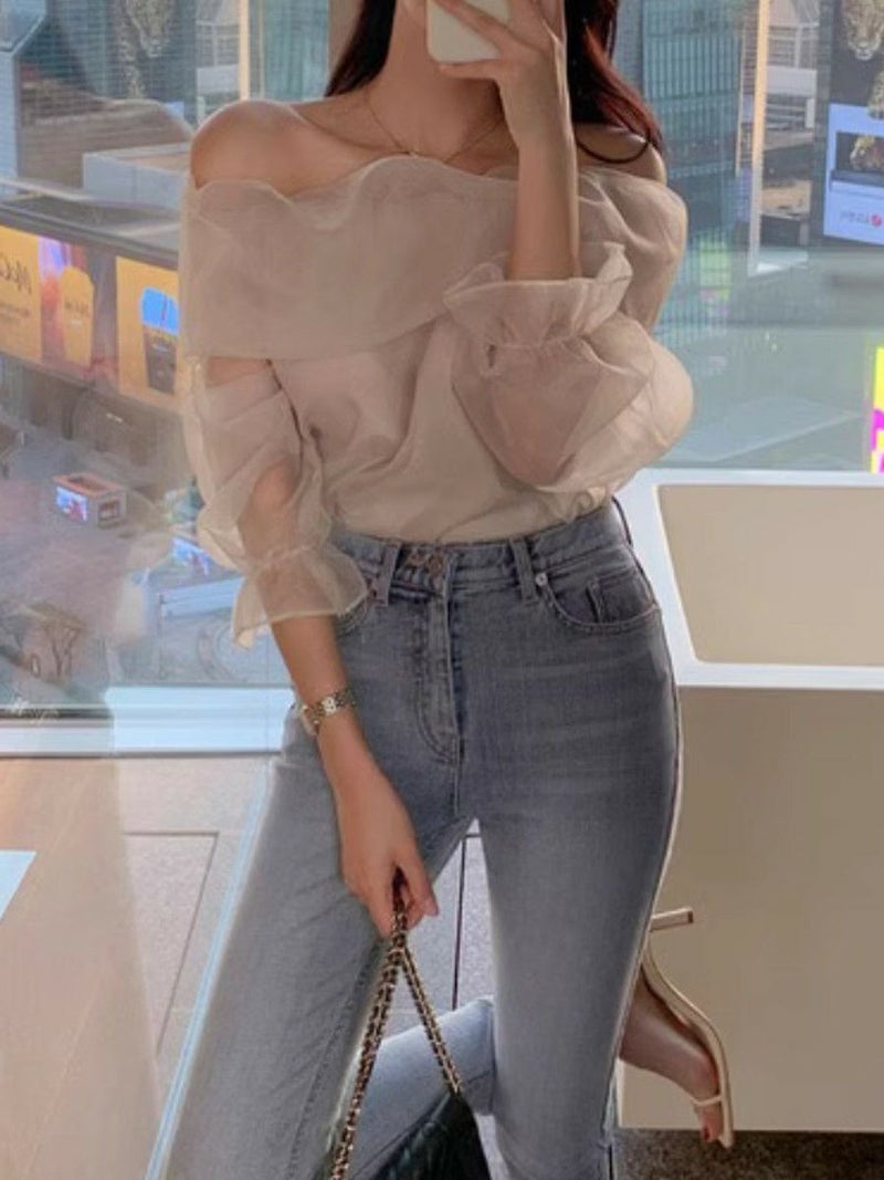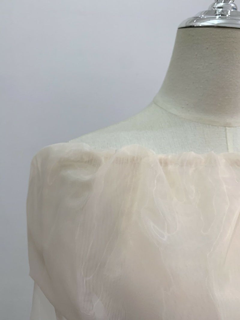 トレンドのオーガンジー素材が可愛いオフショルダートップス