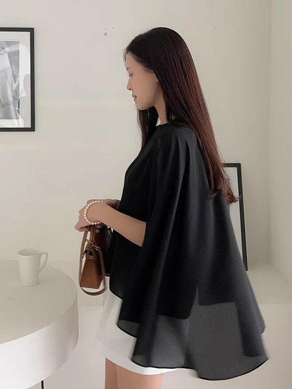 4. 予約 3color ケープ調デザイン クルーネック トップス