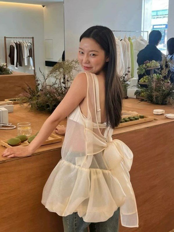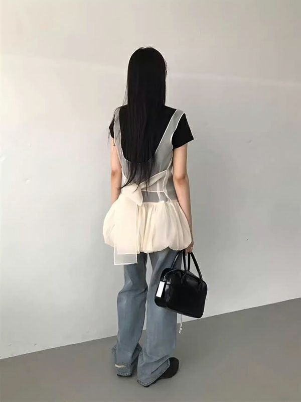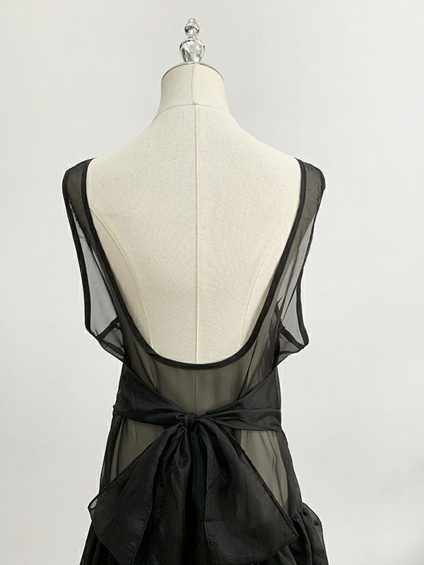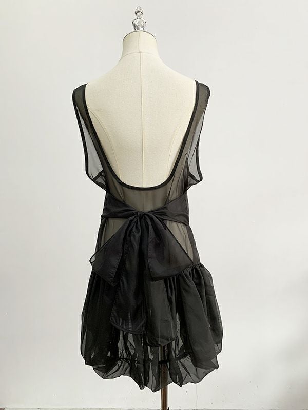 予約 2color シアー レイヤード バックリボン チュニックワンピ