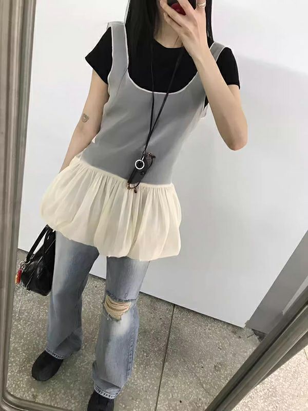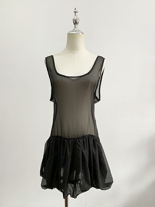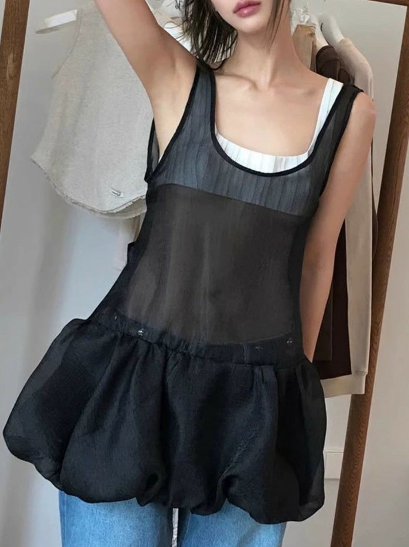 透け感が美しいオーガンジー素材のレイヤード チュニックワンピ