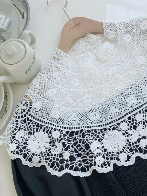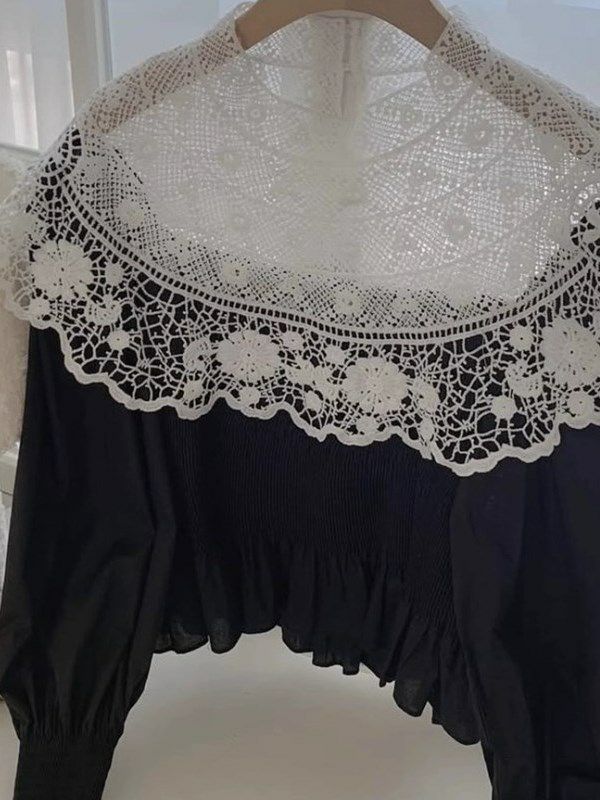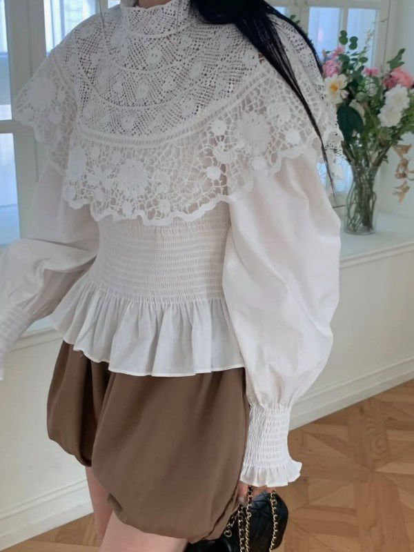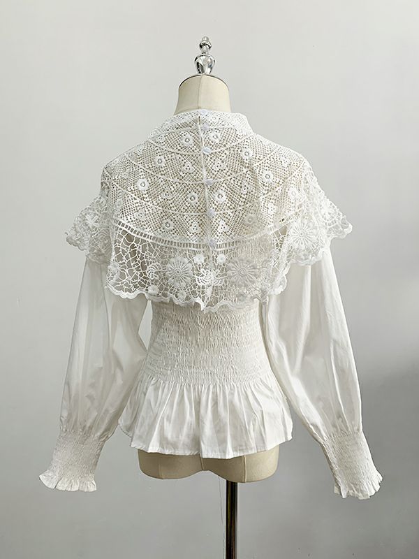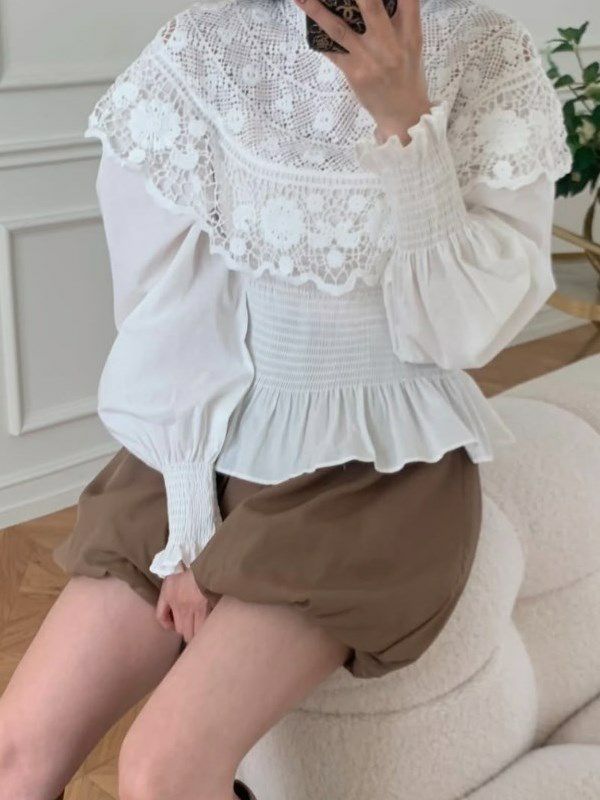 繊細なカットワークレースが主役のペプラムブラウス。