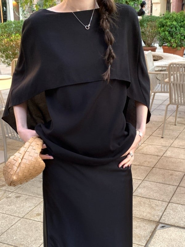 シンプルながら洗練された印象を与える、ノースリーブトップスとワイドパンツのセットアップ。