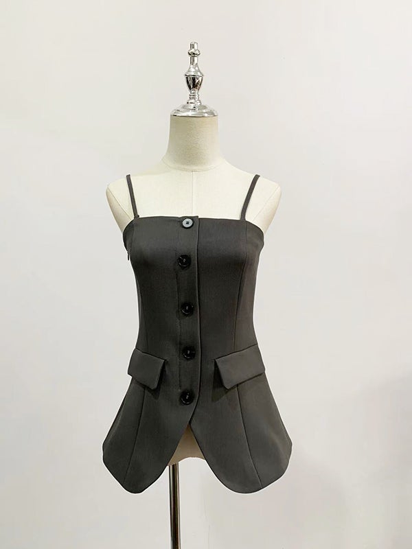 早期価格 予約 2color フロントスリット ウエストシェイプ キャミビスチェ×ワイドパンツ セットアップ