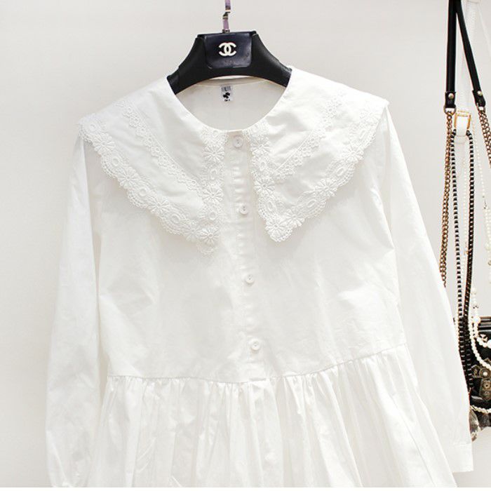 予約 2color ビックカラー セーラー レース 長袖 ギャザー トップス