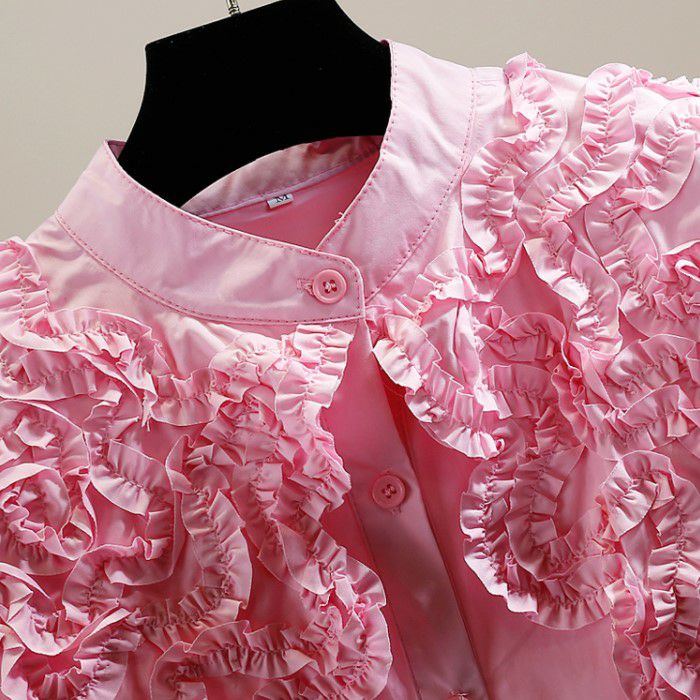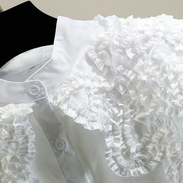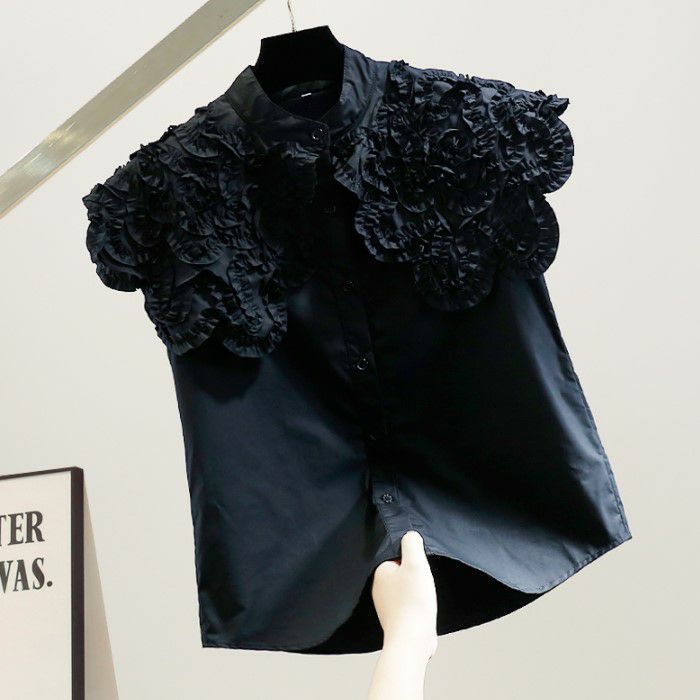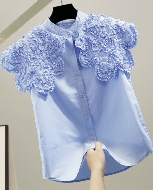 デコラティブな襟が旬なデザインのノースリーブシャツ