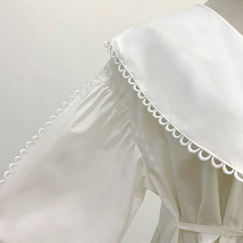 予約 2color ビッグカラー デザインレース ラップ ブラウス
