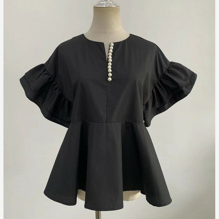 ※大人気の袖フリルAラインワンピースblack と同生地を使用しています。