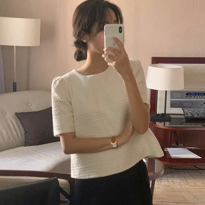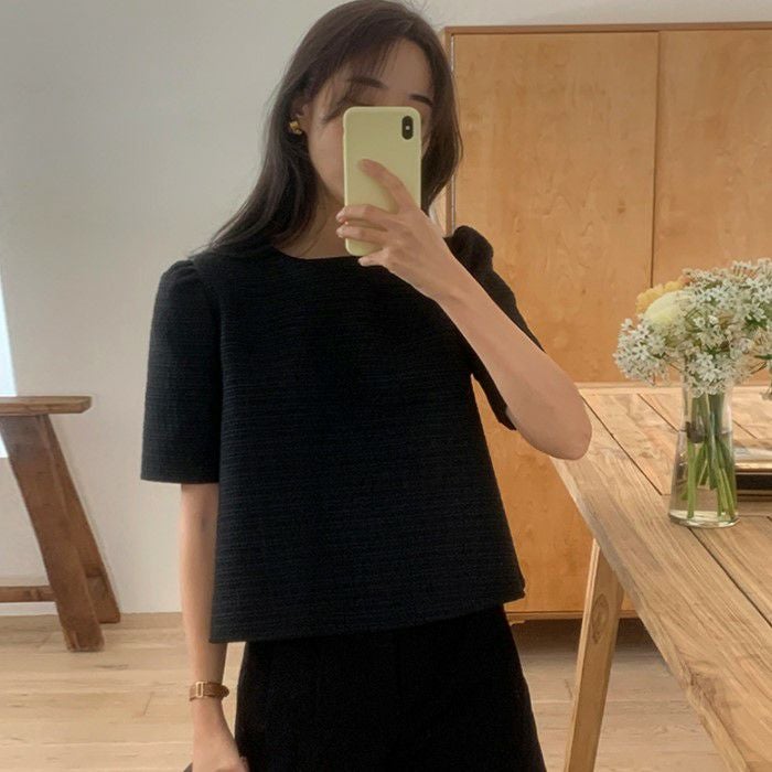 予約 2color ハーフスリーブ ツィード プルオーバー