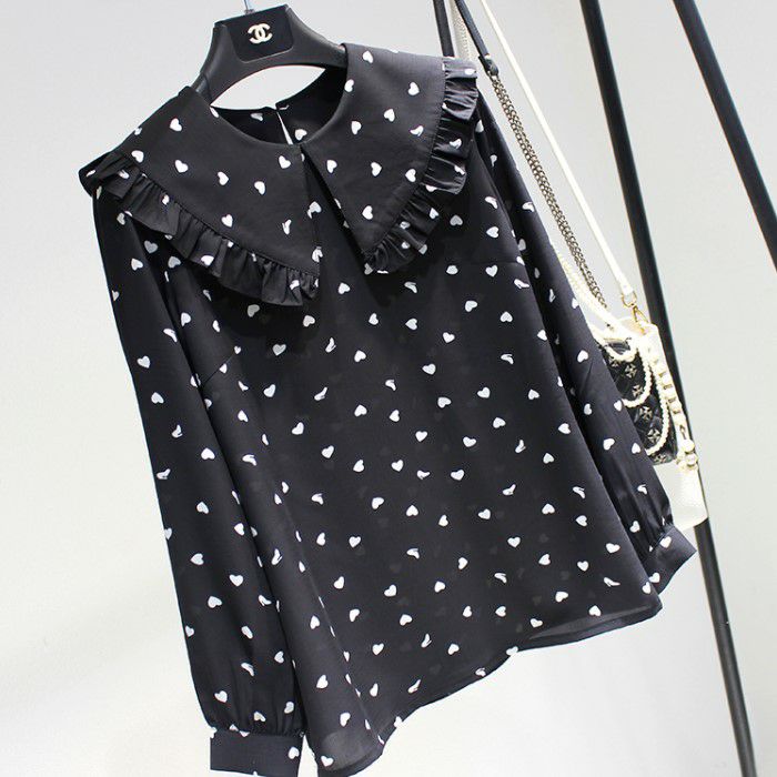 ハートのモチーフが可愛いシフォンシャツのプルオーバー