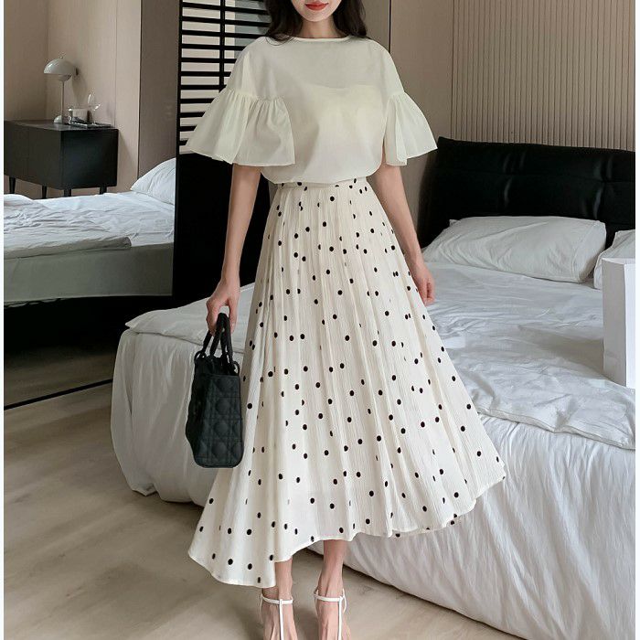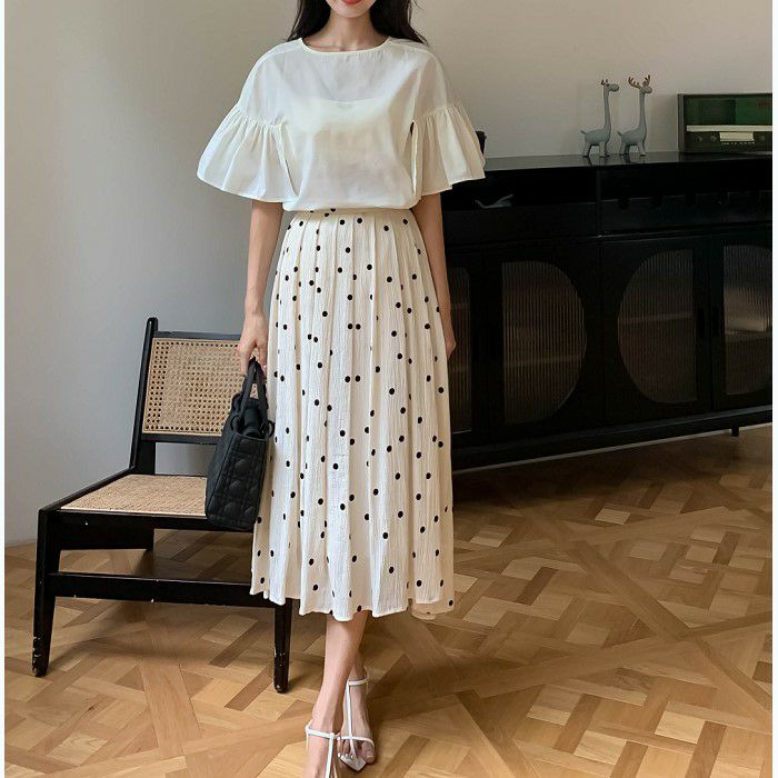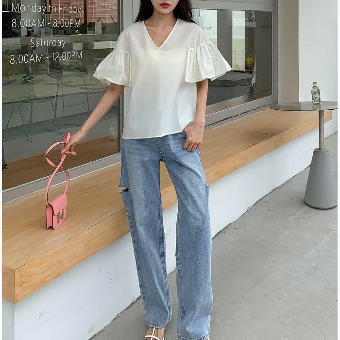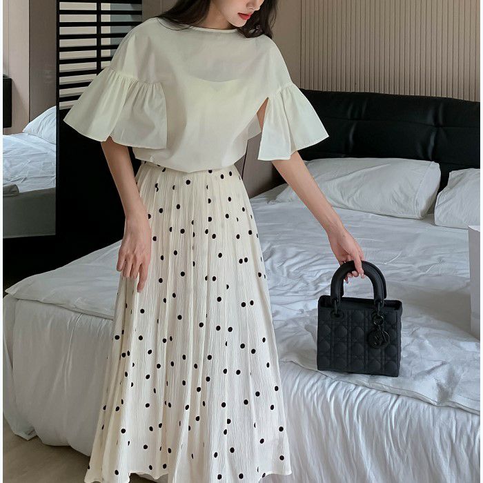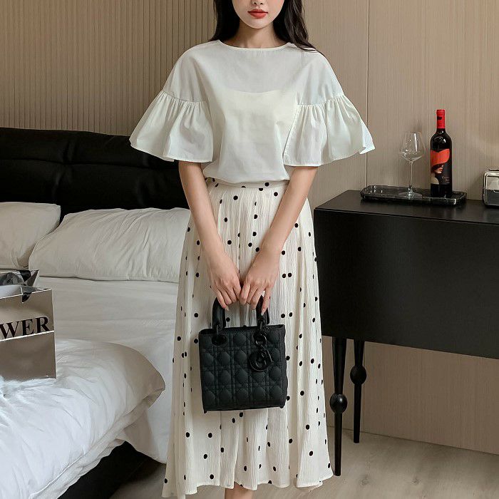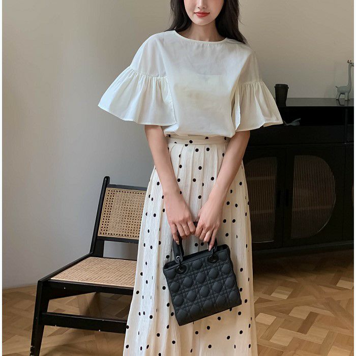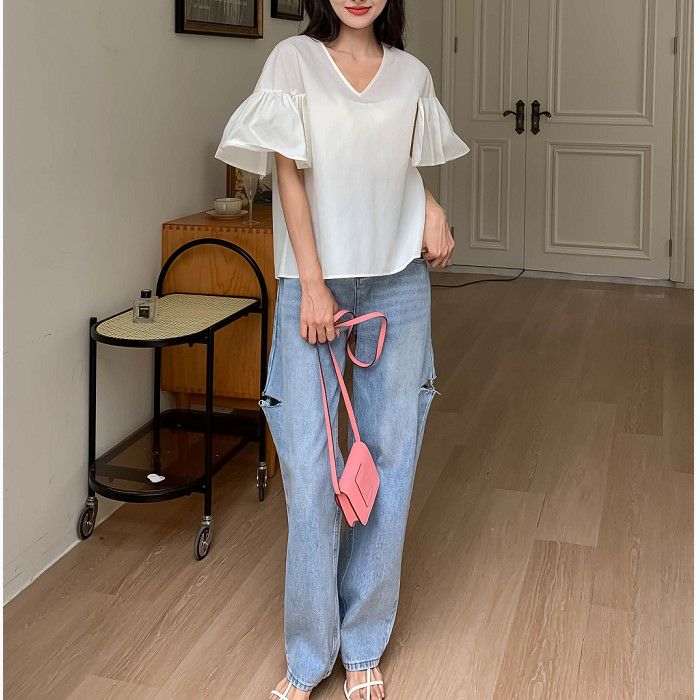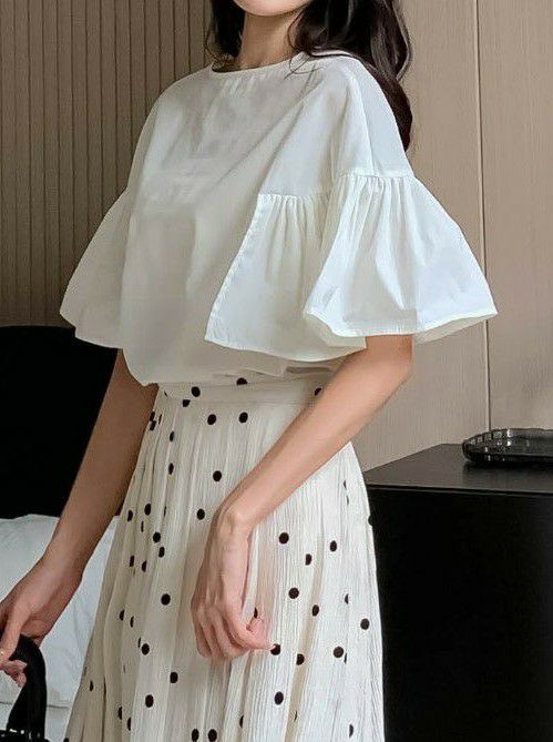 FRILLスリーブは程よいボリュームがあり歩く度に揺れて目を惹く一着