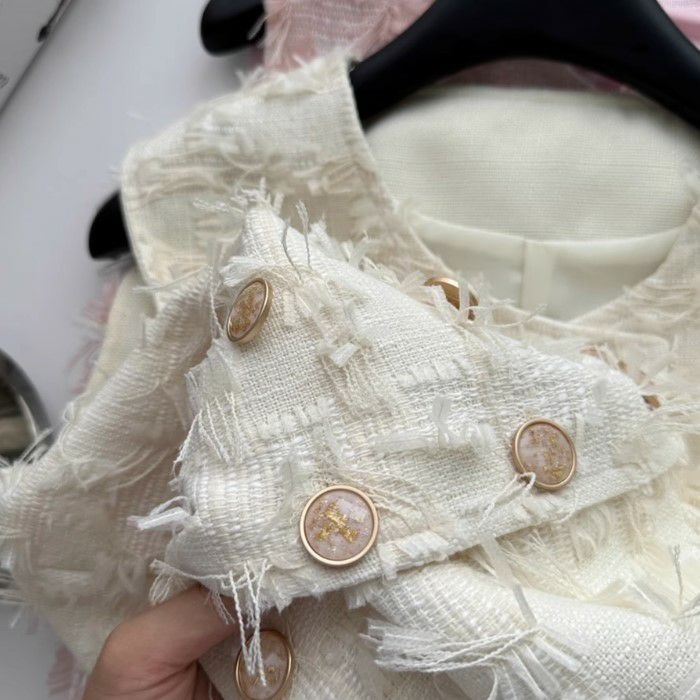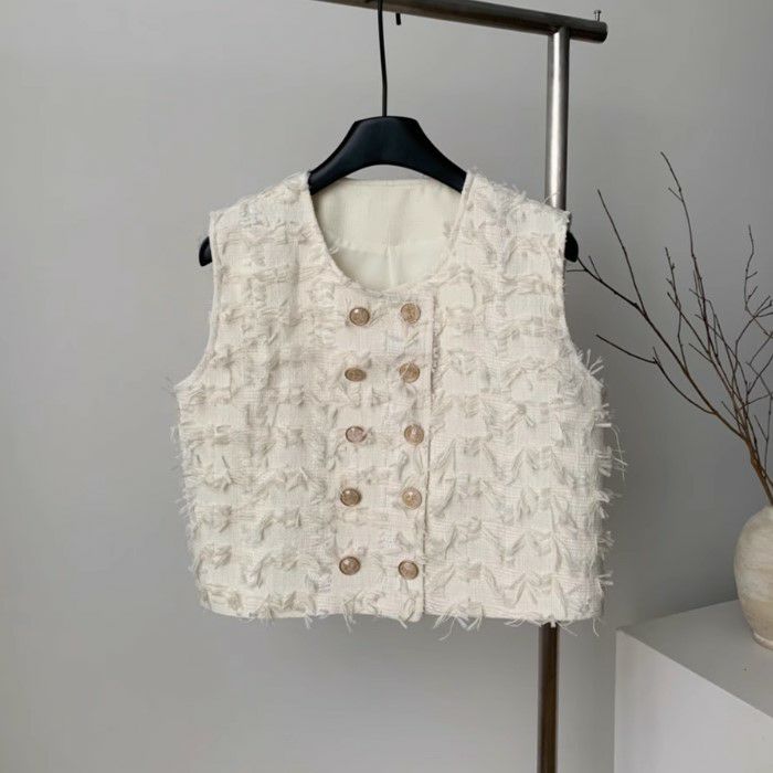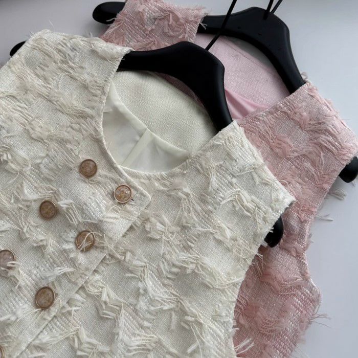 予約 2color フェザー ツイード ジレ ダブルボタン