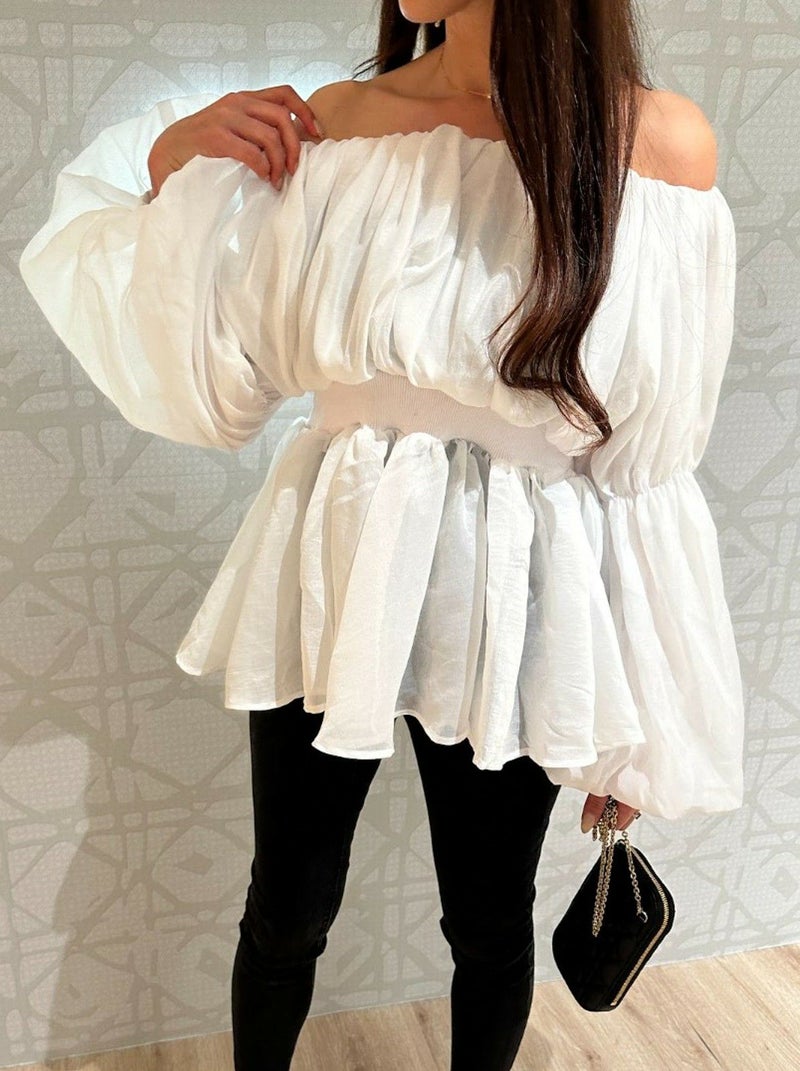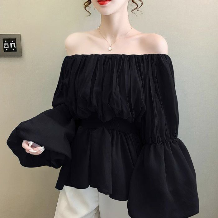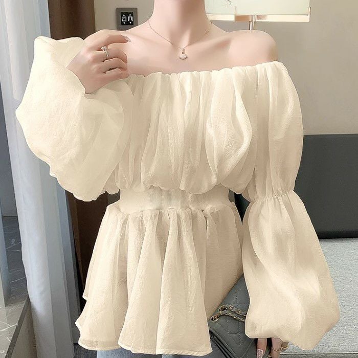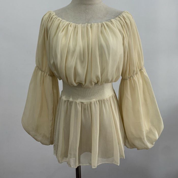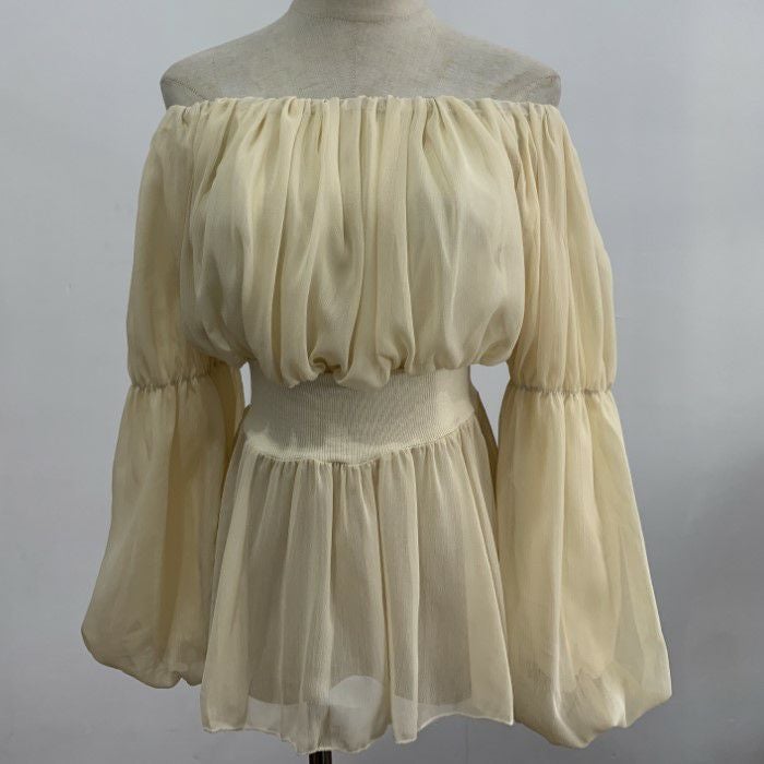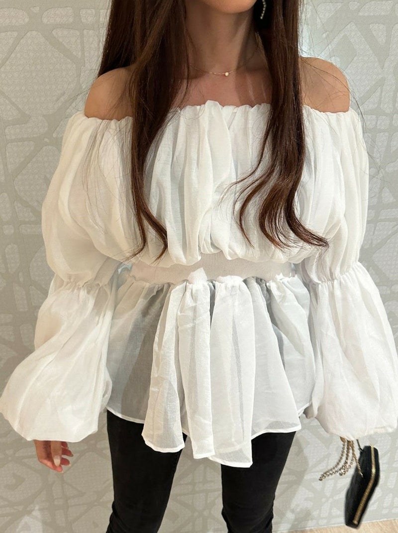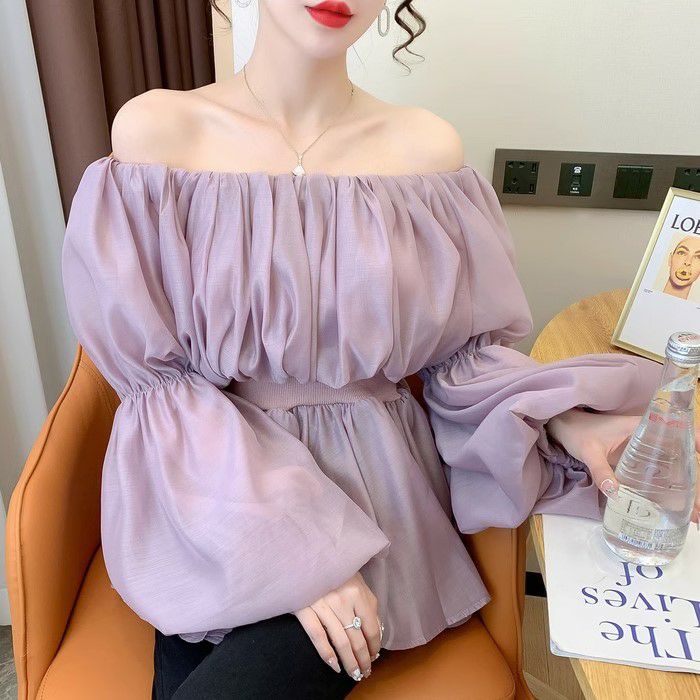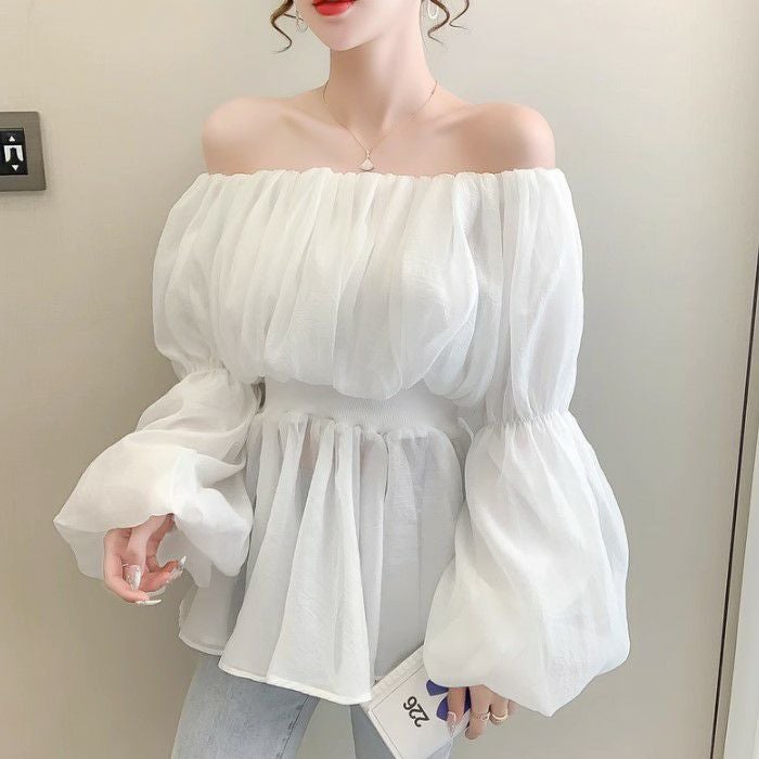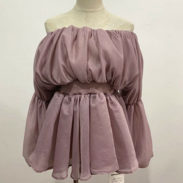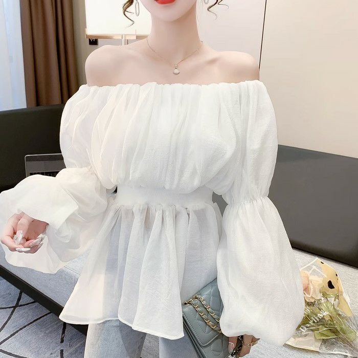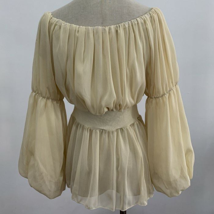 一部即納 4color シアー フリル オフショルダー トップス