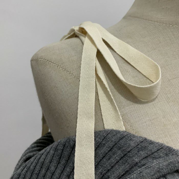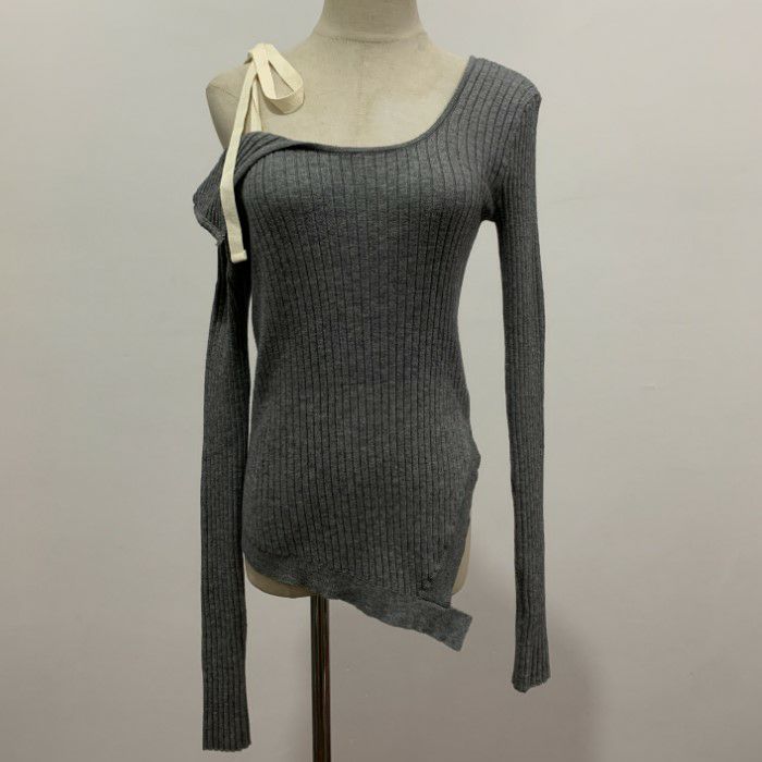 予約 オープンショルダー リボン アシンメトリー リブ ニット