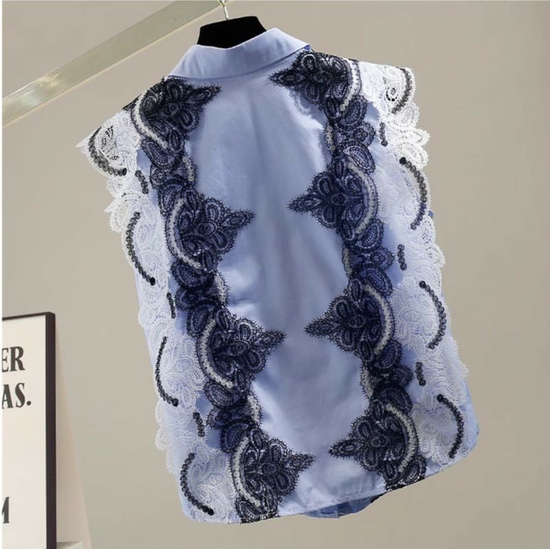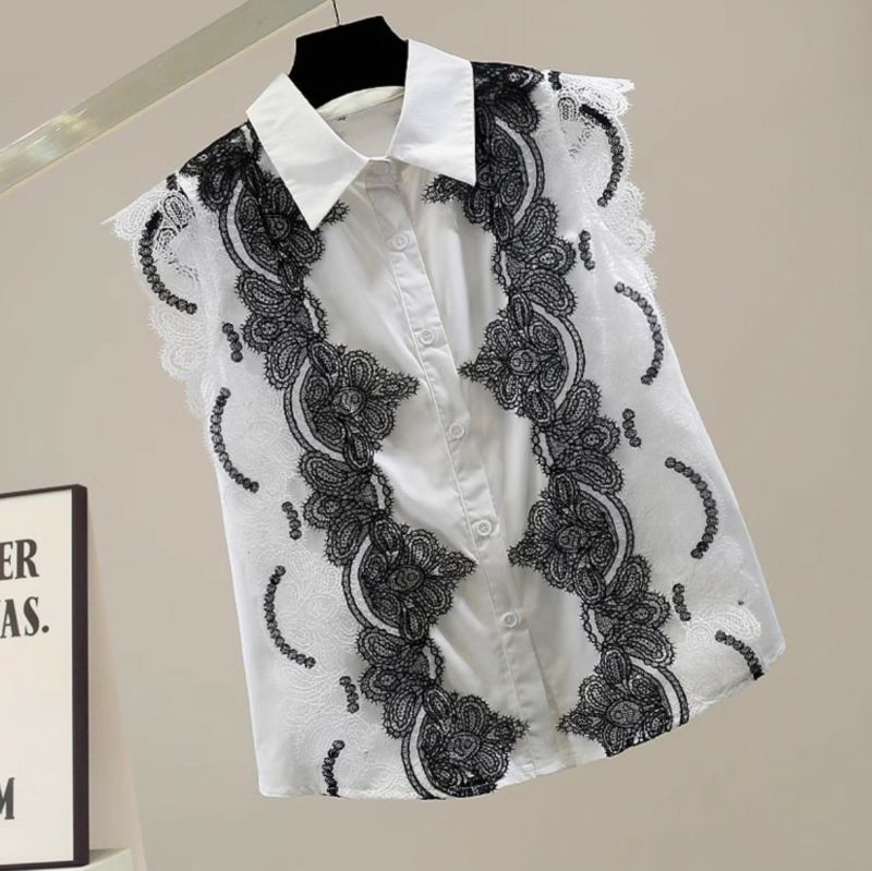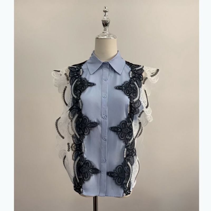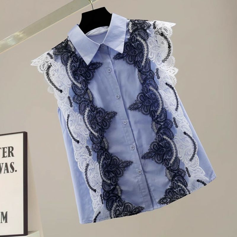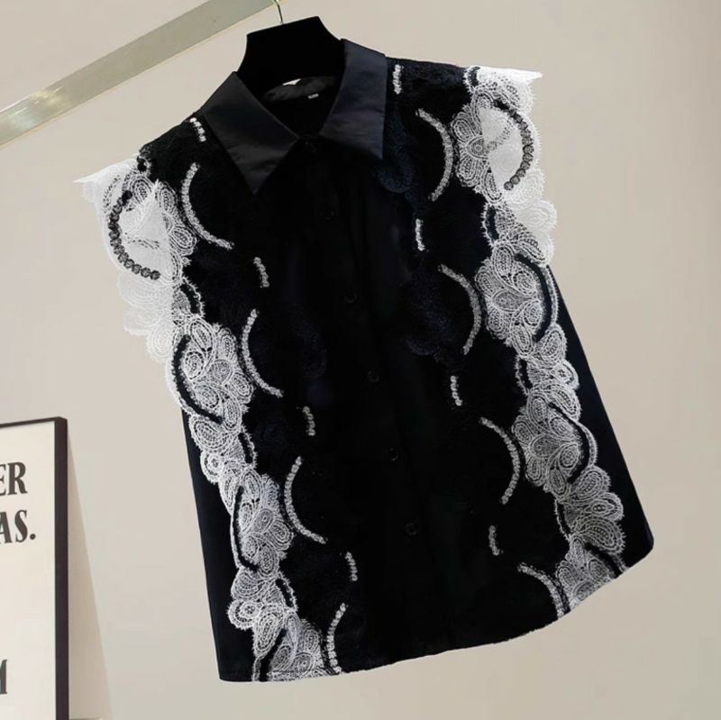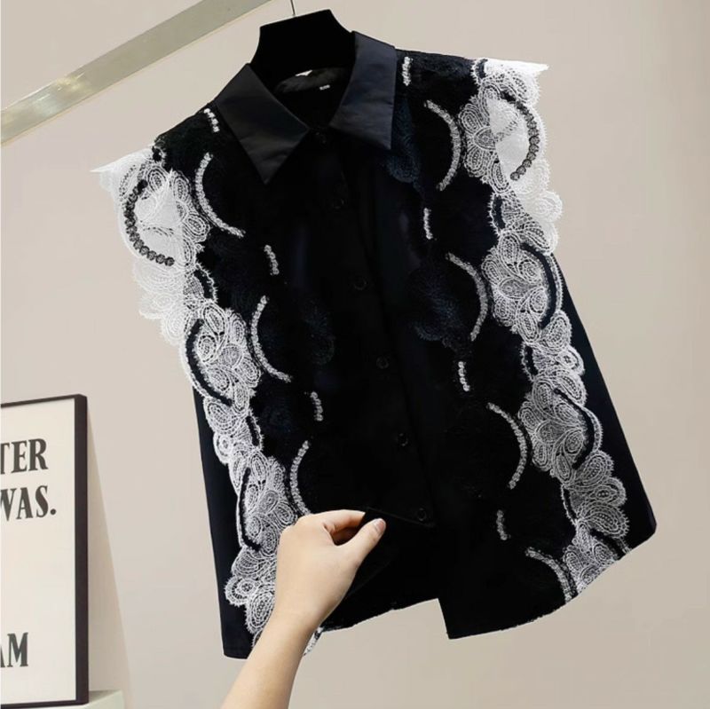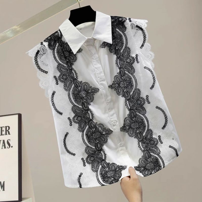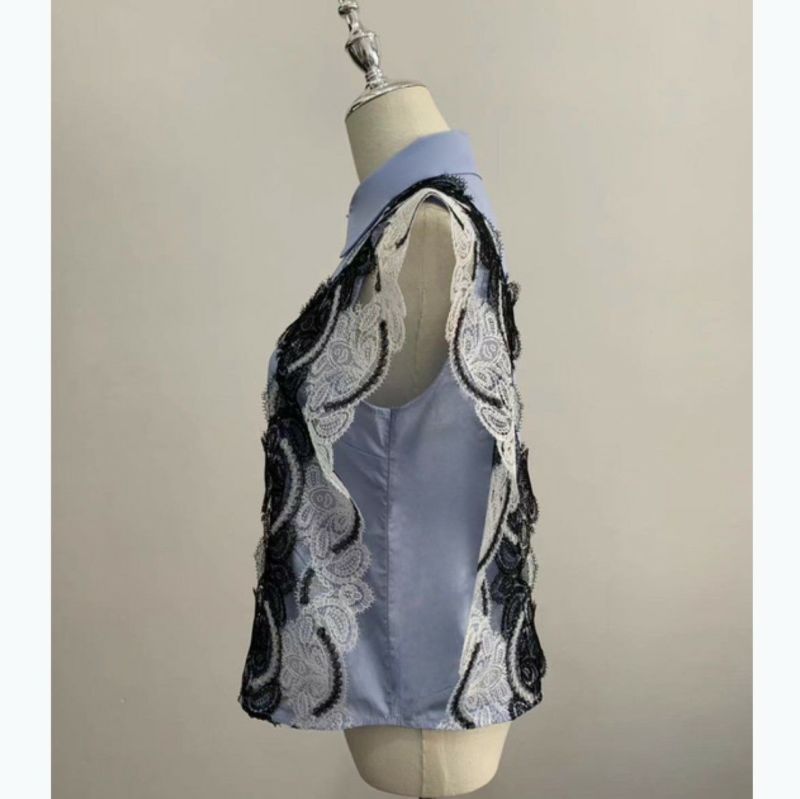 予約 3color サイド レース ドッキング ノースリーブ シャツ