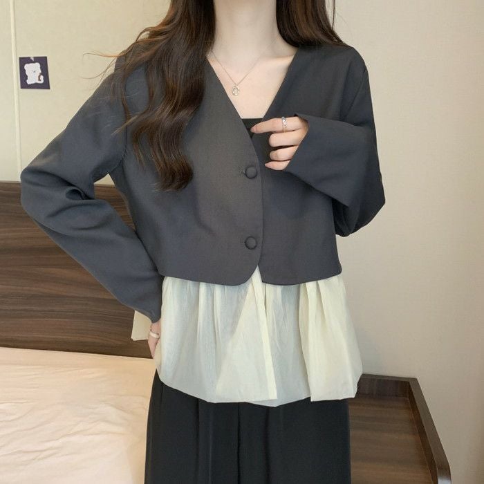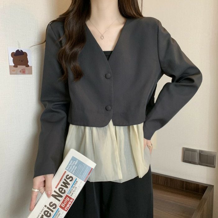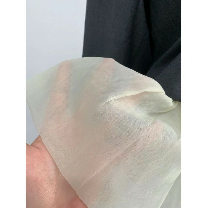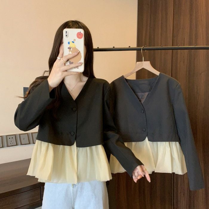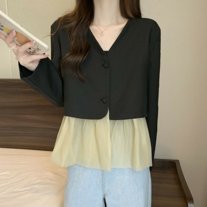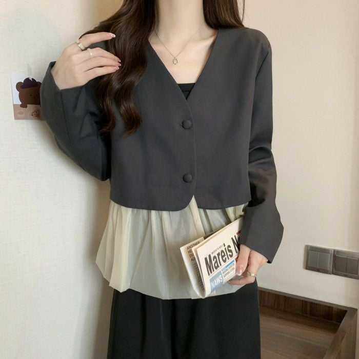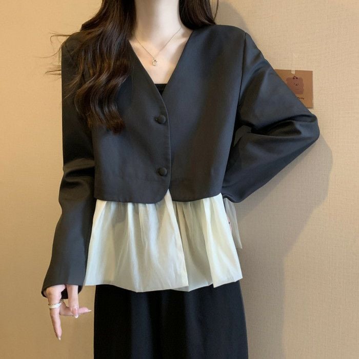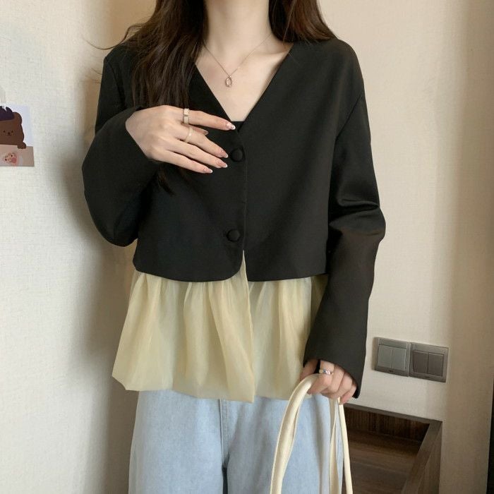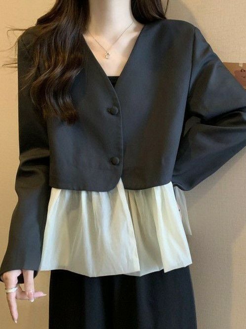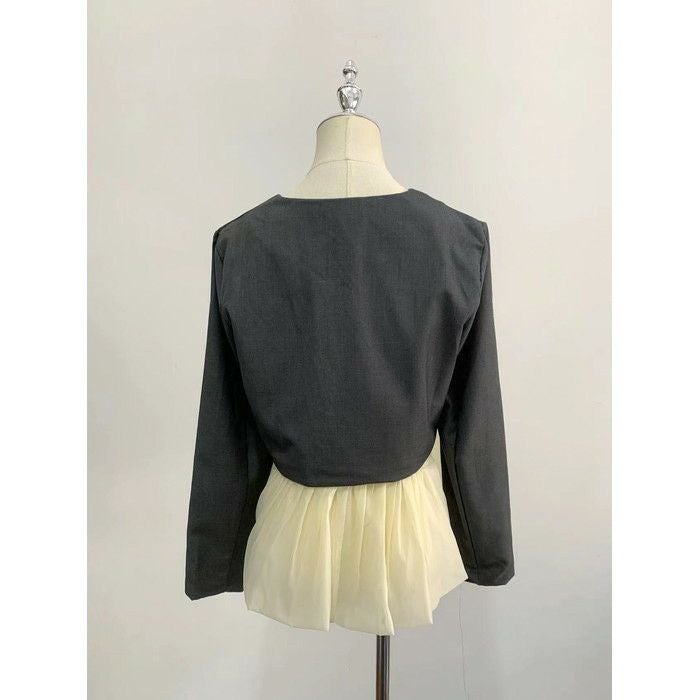 予約 2color ノーカラー 切替 オーガンジー裾 ジャケット