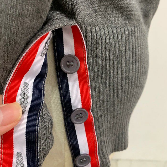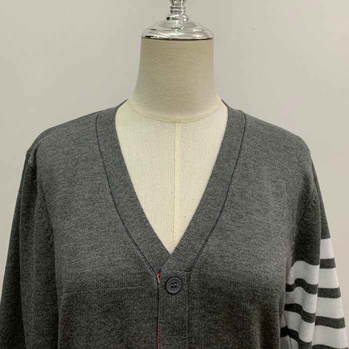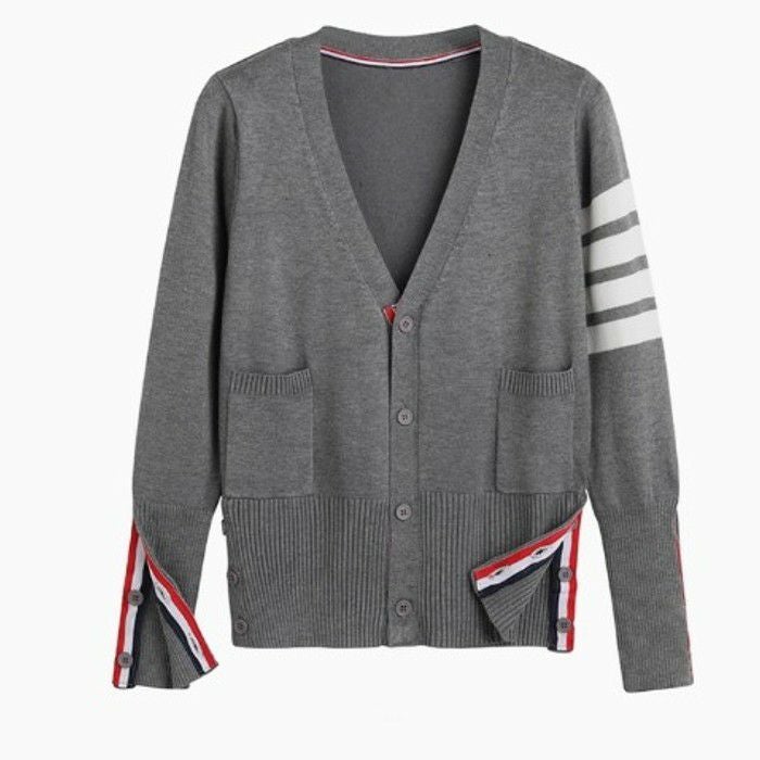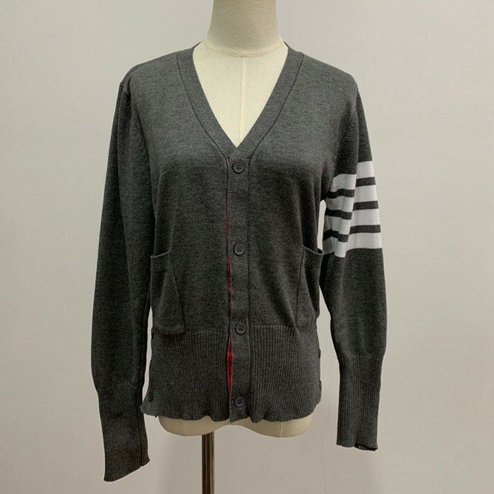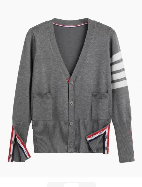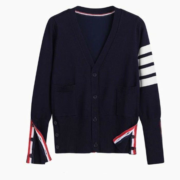 一部即納 2color トリコロール ラインデザイン Vネック カーディガン