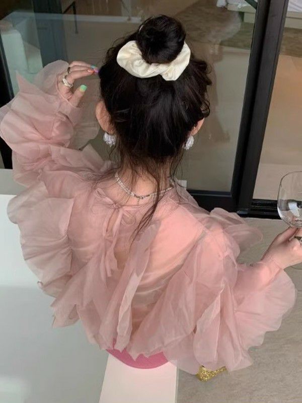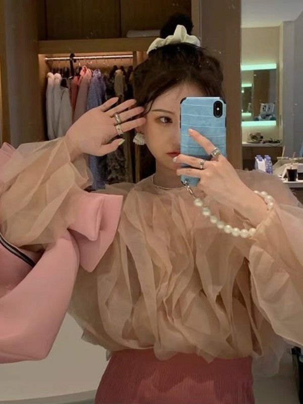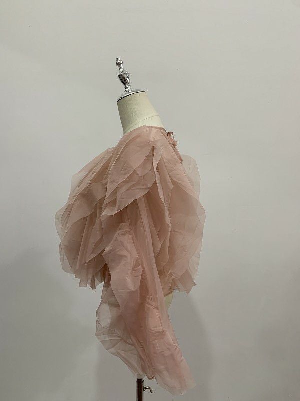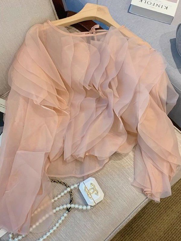 予約 ラッフルフリル シアー プルオーバー ブラウス